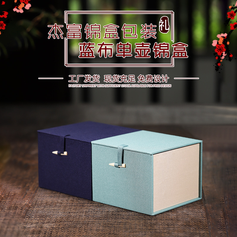 青い青い骨の針の単壺の錦の箱の復古の絨毯の布は蓋の錦の箱をひっくり返して紫砂の壺の主人の杯の礼箱を建てます。