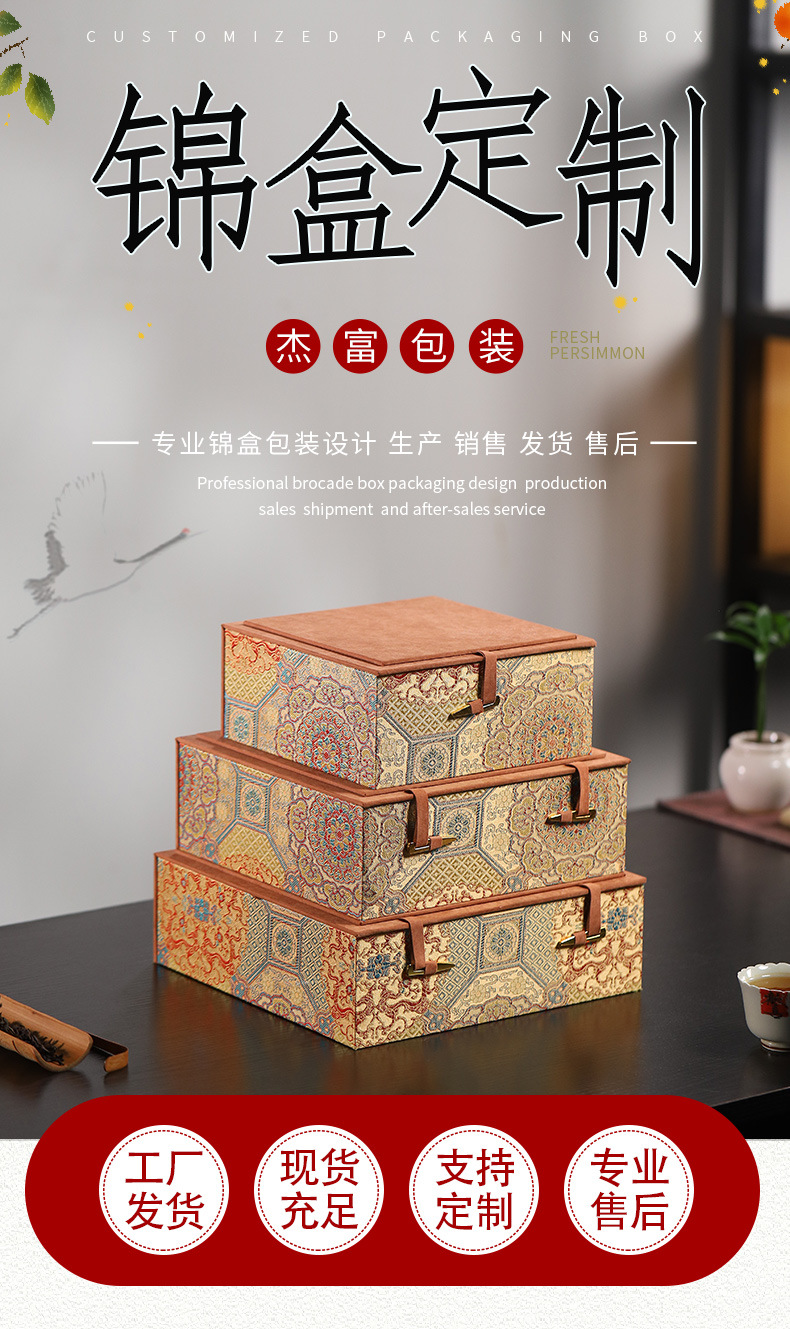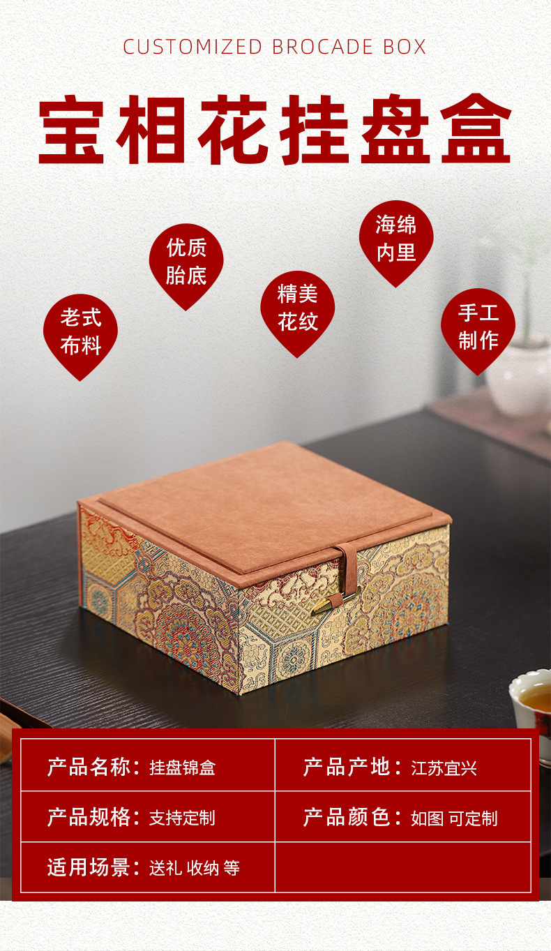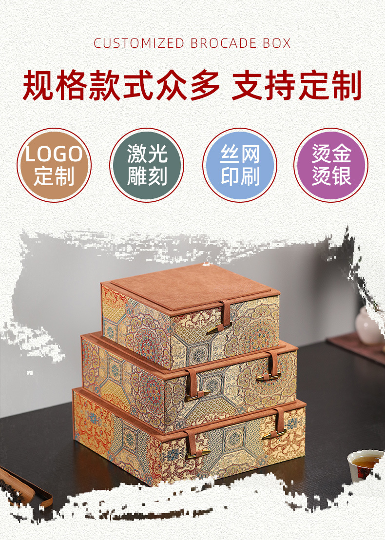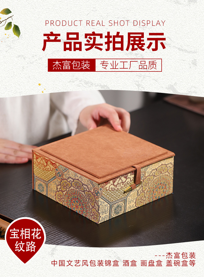 万華宋錦模様の中国風紫砂茶壺、主杯、建盞、包装箱、ジュエリー収納箱、ギフトボックス、手作り