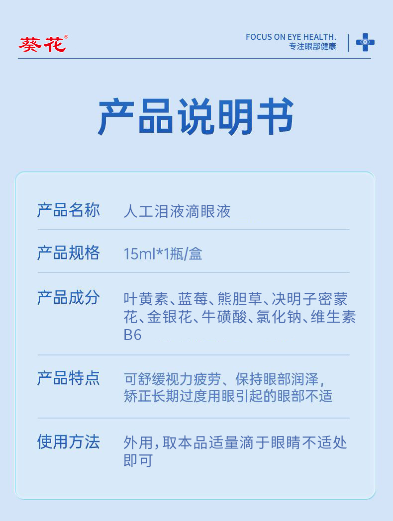 葵花蓝莓叶黄素护理液滴眼液眼睛干涩隐形眼镜视疲劳抖音快手爆款