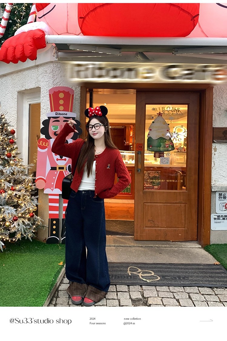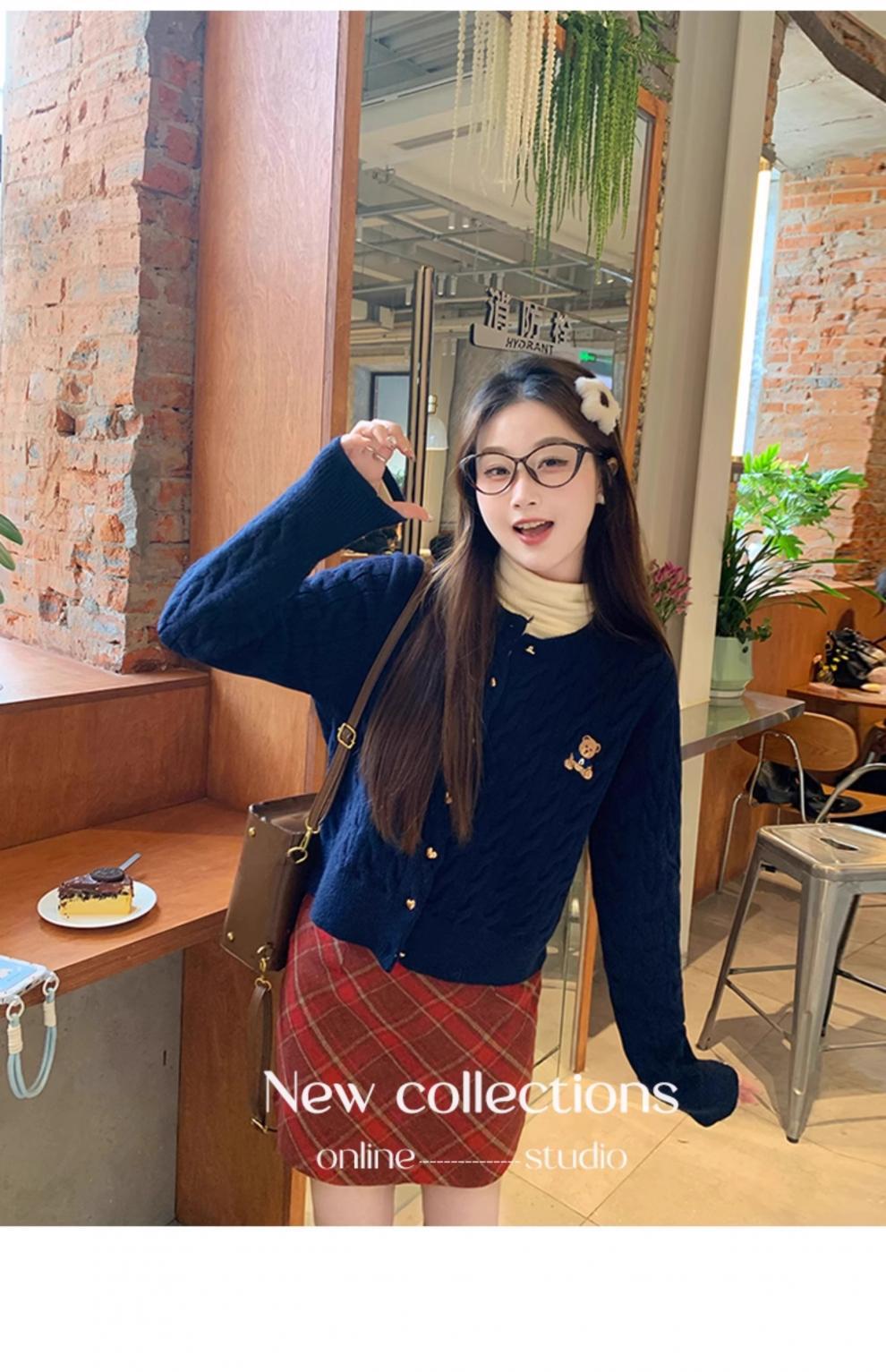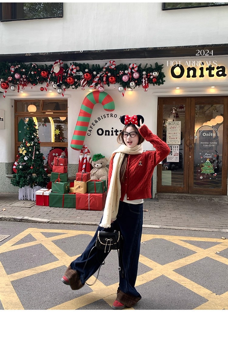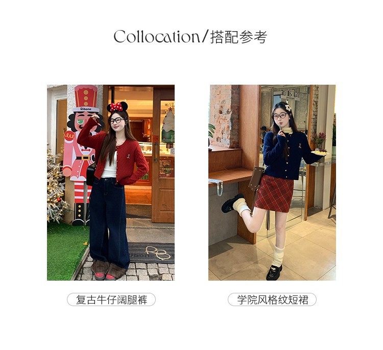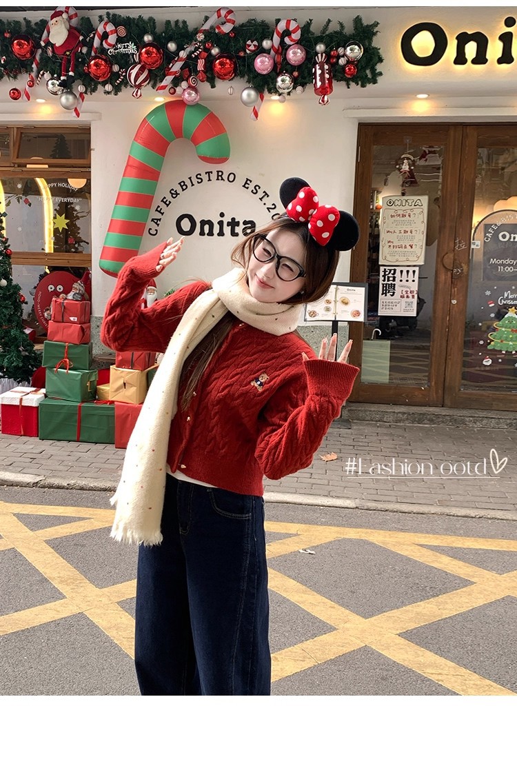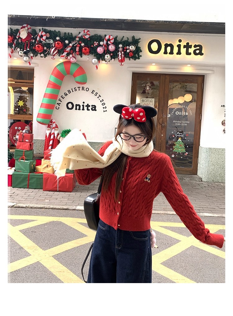红色毛衣开衫女秋冬高级感新年穿搭小熊学院风上衣