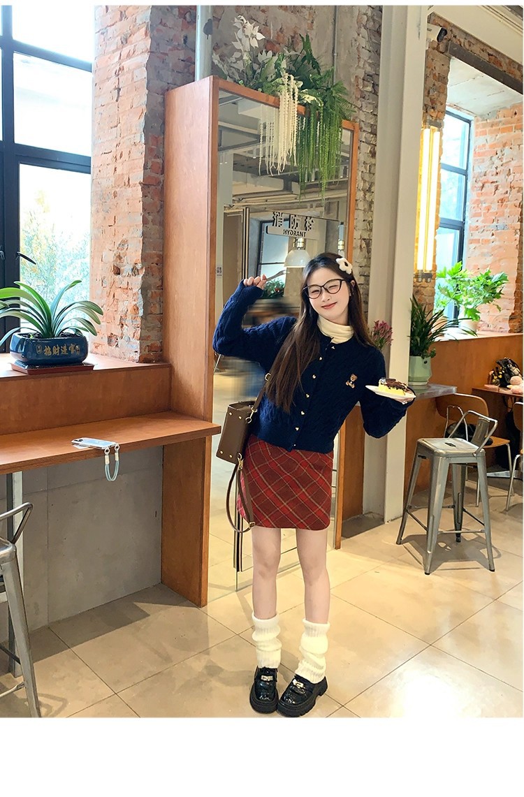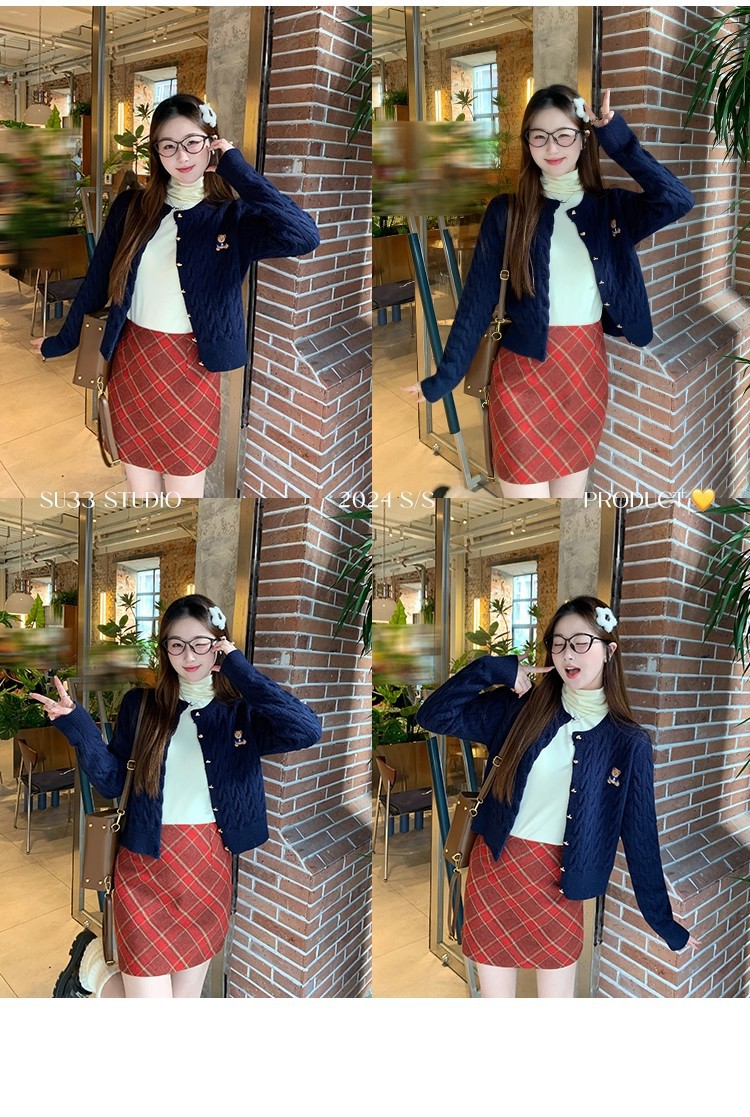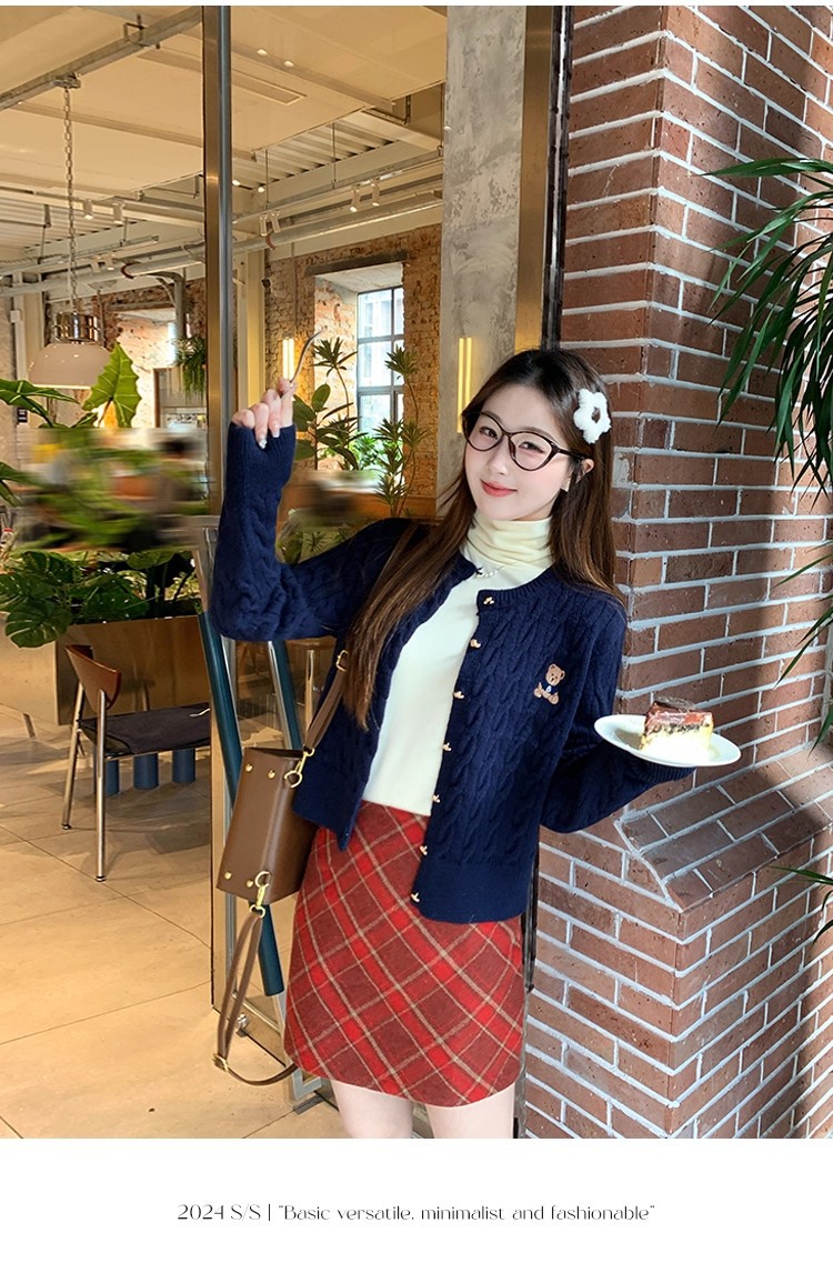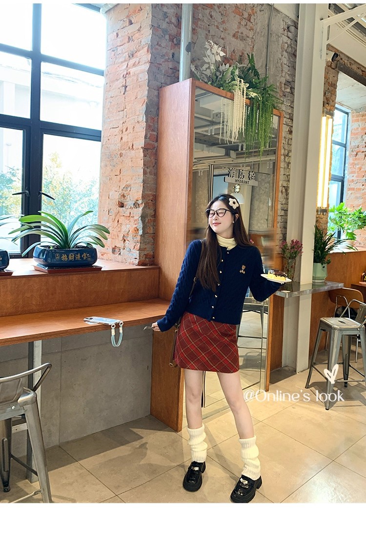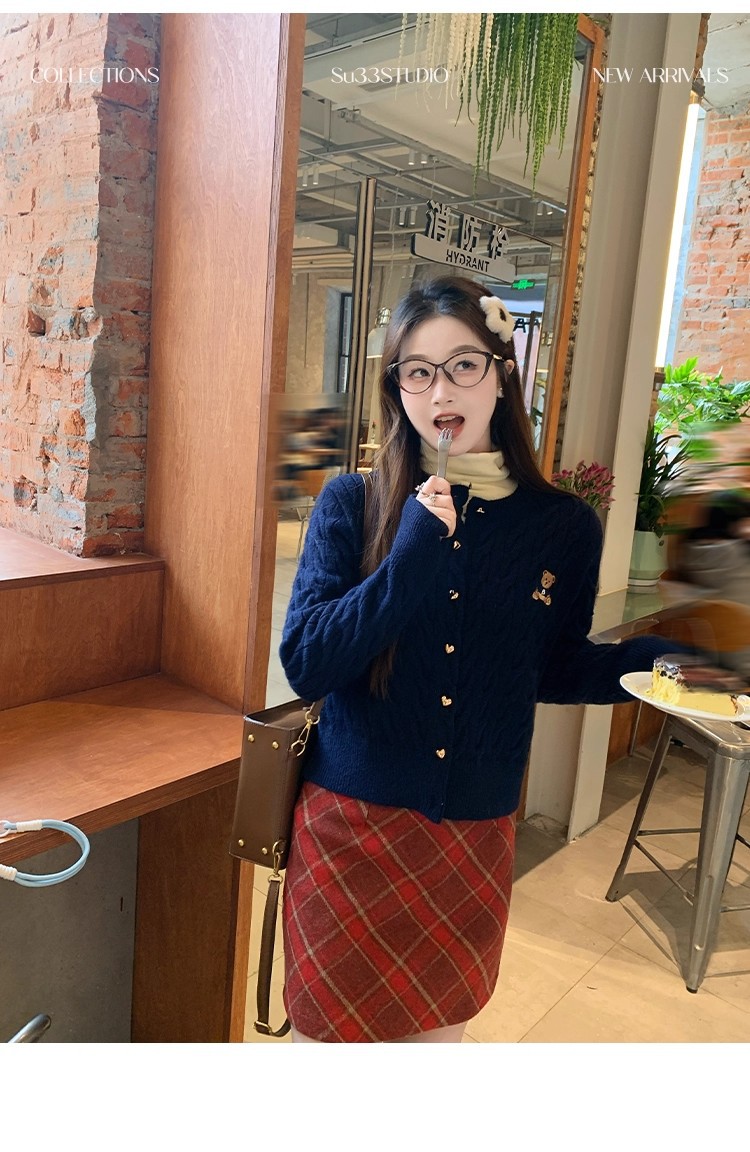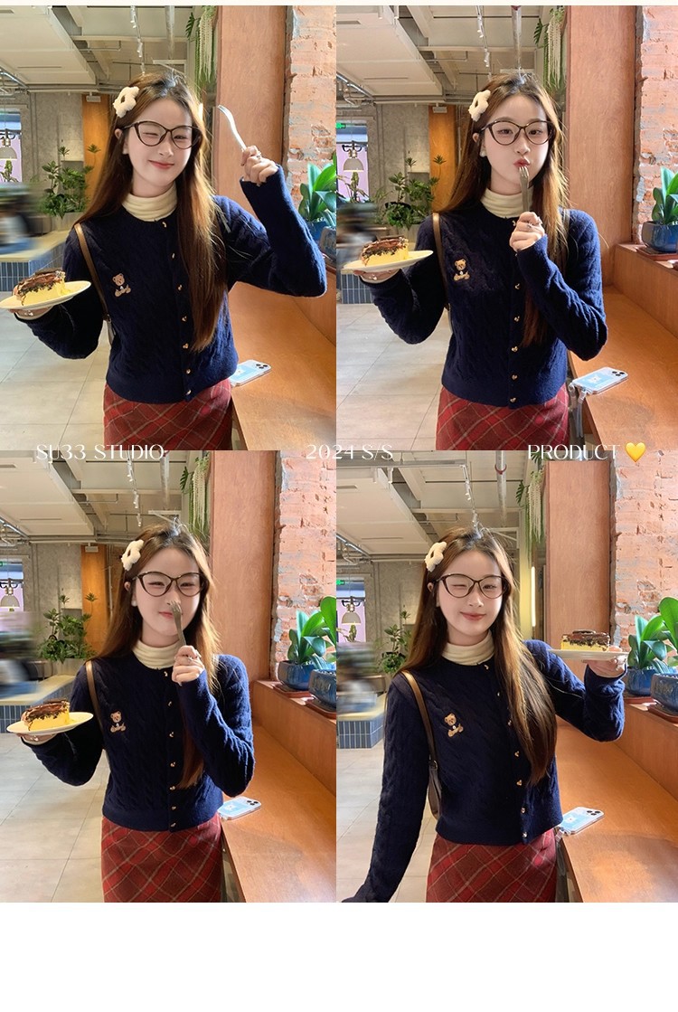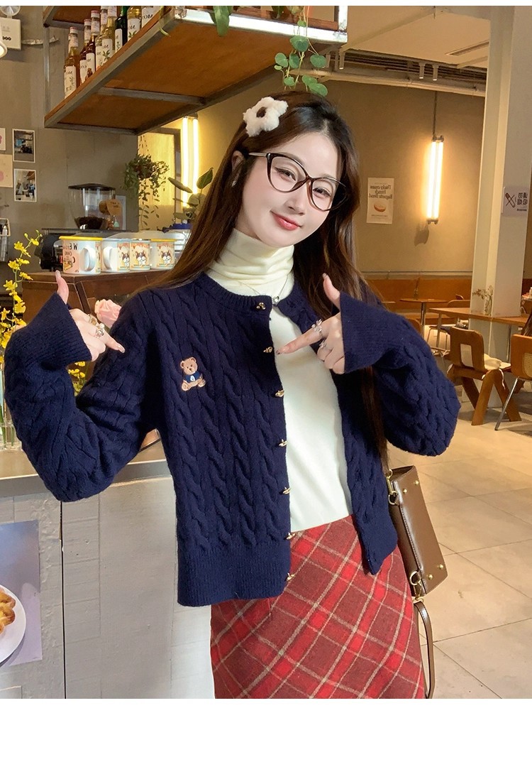 秋冬新作麻花刺繍ニットカーディガン丸首高品質ショートスタイル雰囲気セーター上着コート
