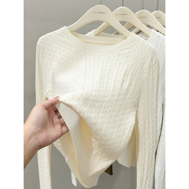 洋气麻花刺绣针织衫女秋冬季新款毛衣韩系白色长袖内搭打底衫上衣
