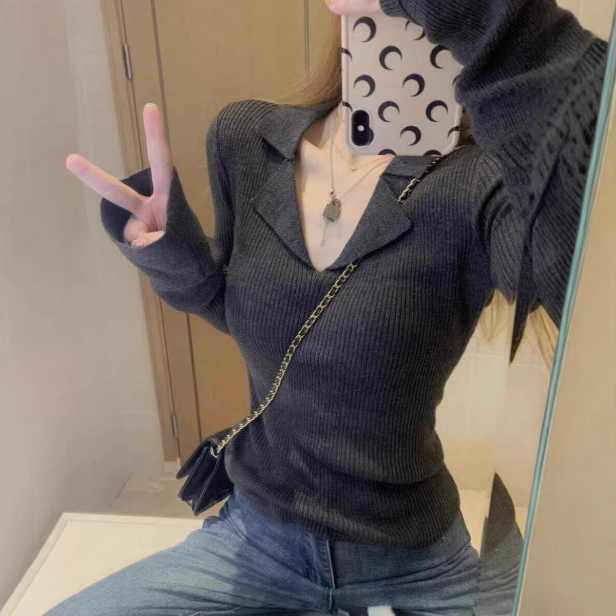 2026早春法式v领长袖针织衫女设计感小众内搭打底衫套头毛衣上衣