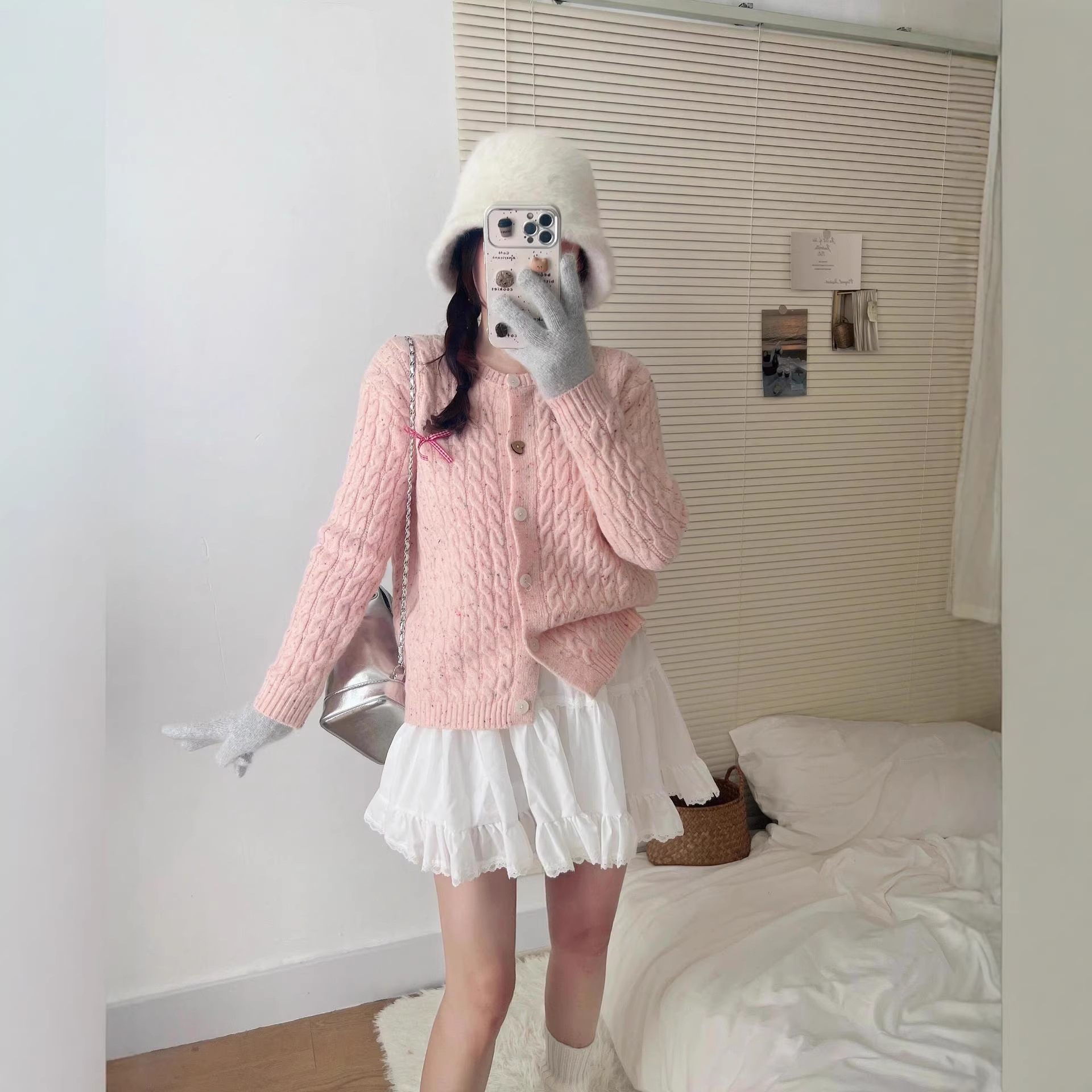 2026新款彩色刺绣软糯麻花早秋韩系针织毛衣开衫外套女甜美学院风