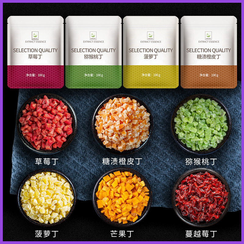 糖渍橙皮丁蔓越莓芒果菠萝草莓猕猴桃丁商用零食蛋糕装饰烘焙专用