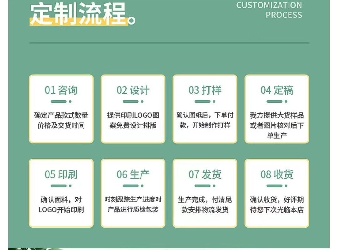 【尺寸】:请客户提供产品的尺寸(长·宽*高),logo尺寸,需要的材质颜色等。