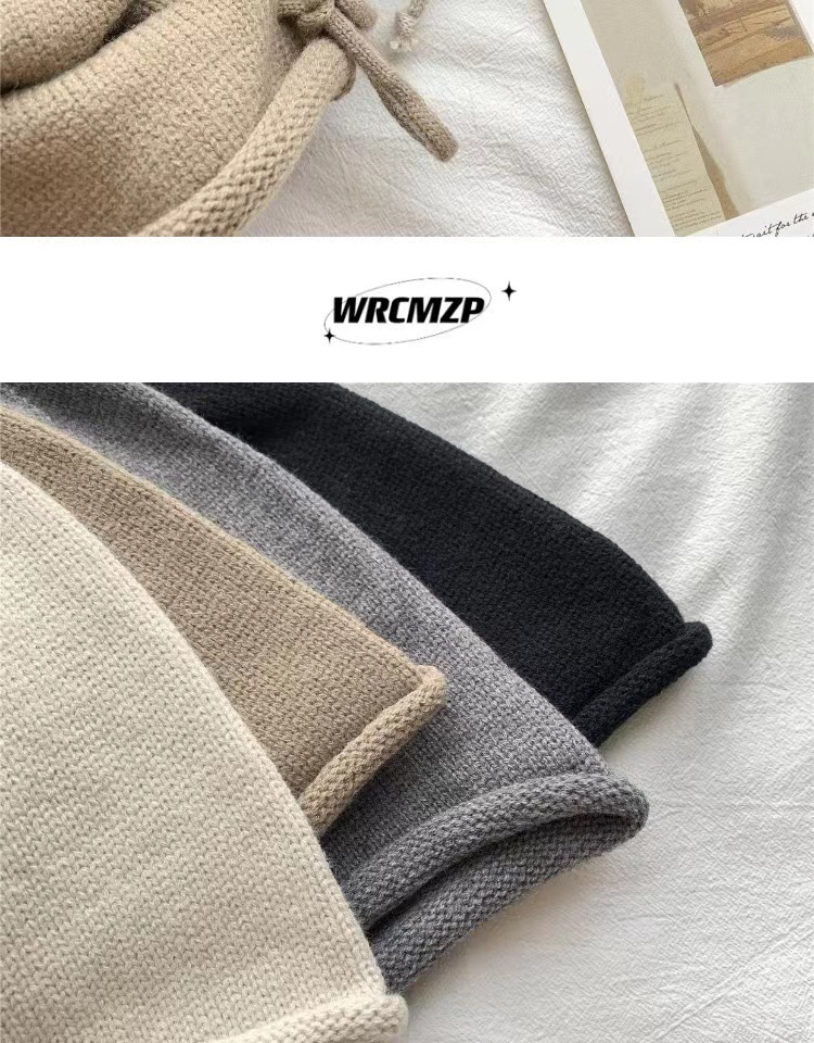 秋冬高级感显脸小包头针织保暖时尚通勤卷边月子帽 抽绳堆堆帽