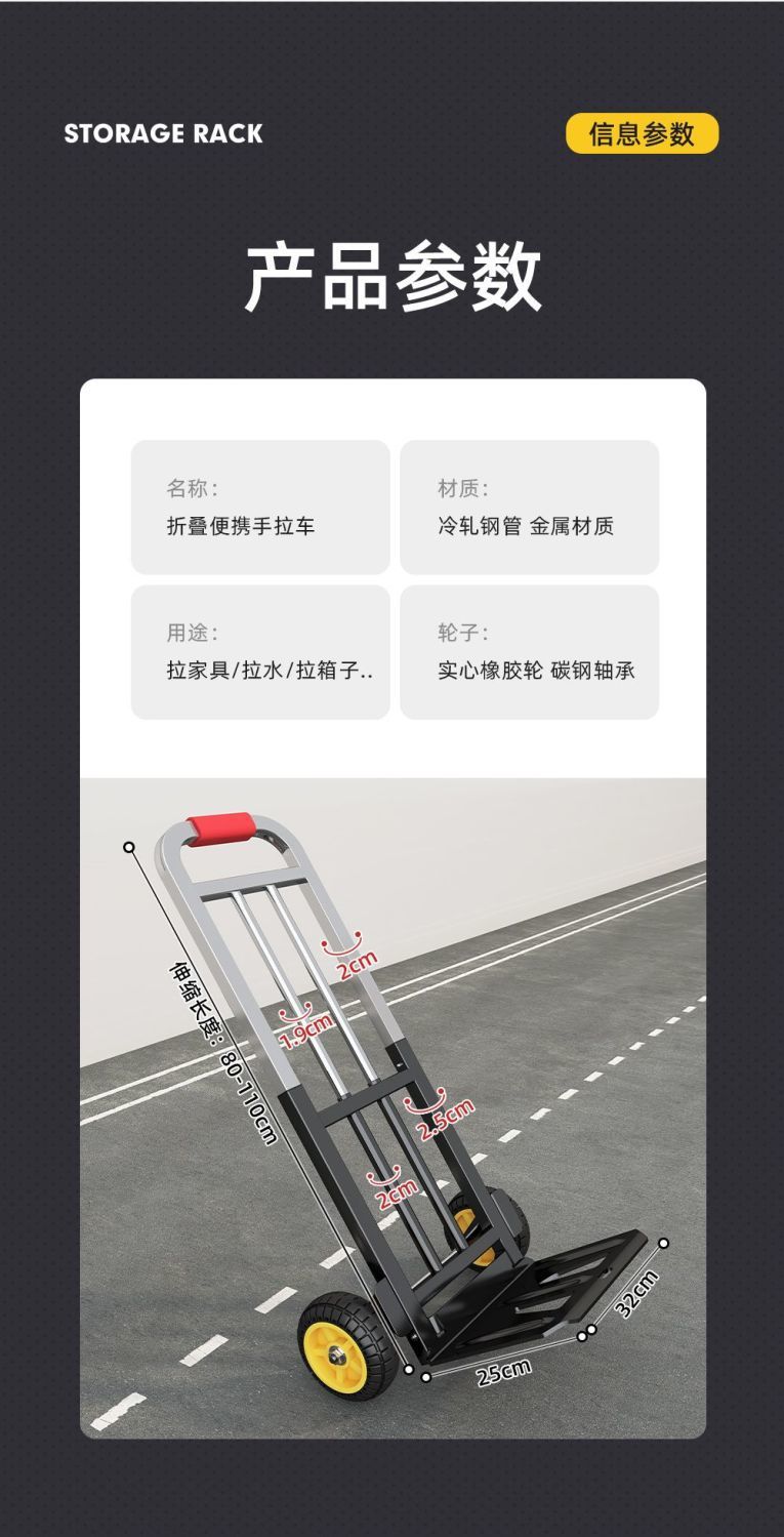 钢板手拉车折叠轻便携拉杆车家用手推车行李搬运爬楼梯小拖车神器