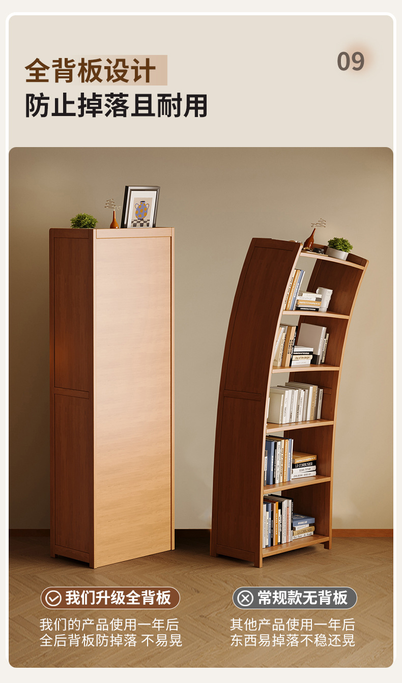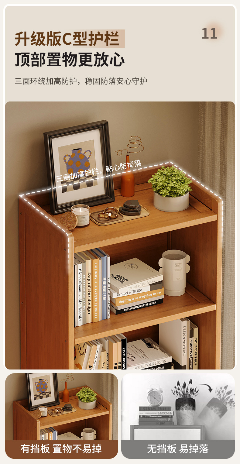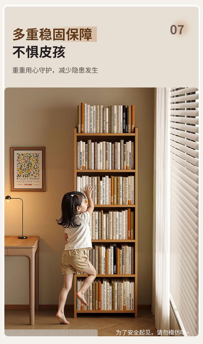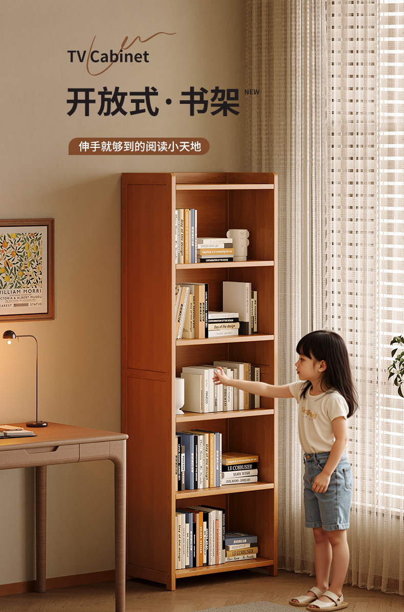 実木本棚一体壁に寄りかかって物を置く棚家庭用子供収納棚