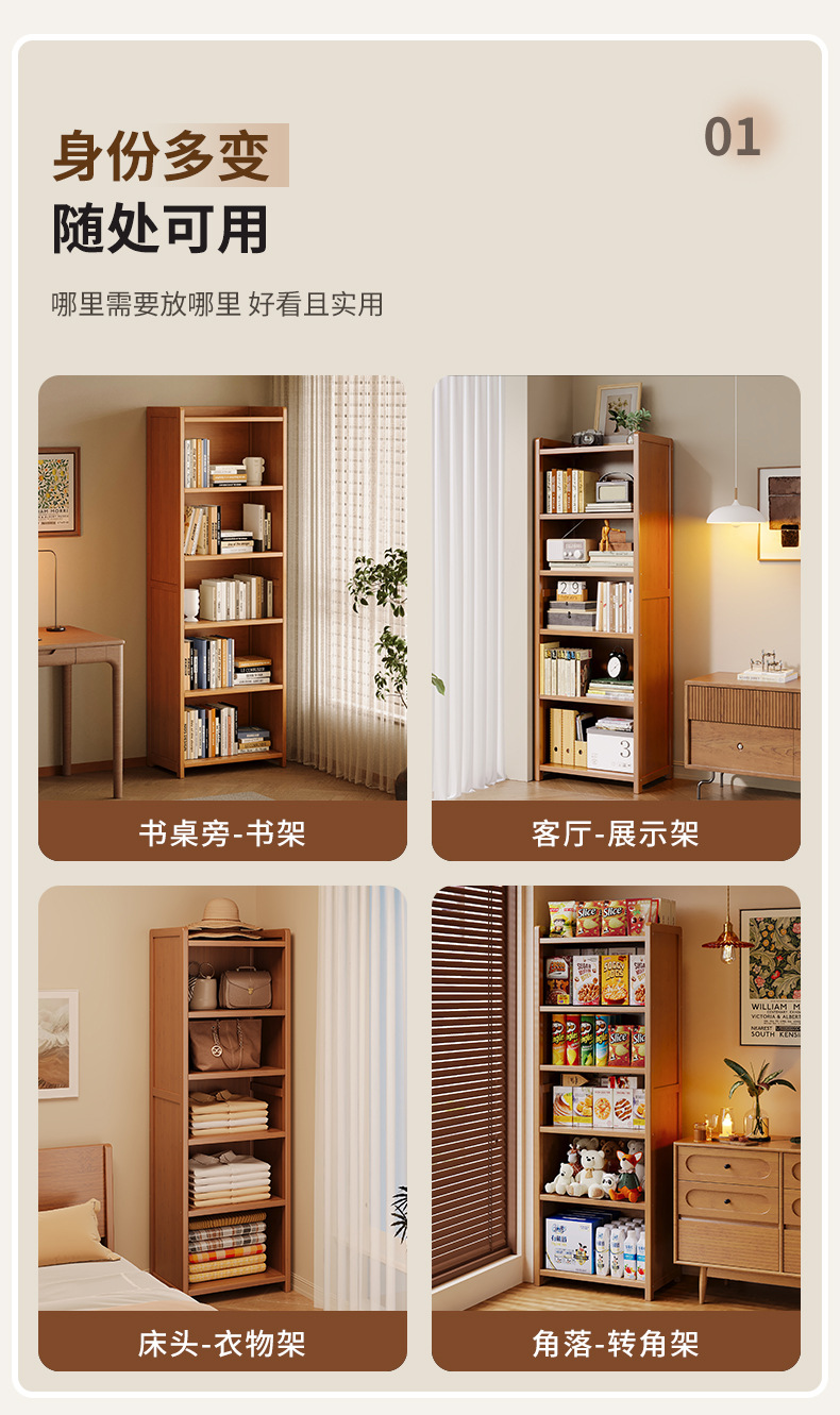 书架落地置物架一体靠墙窄柜子简易储物柜家用客厅书柜收纳展示架