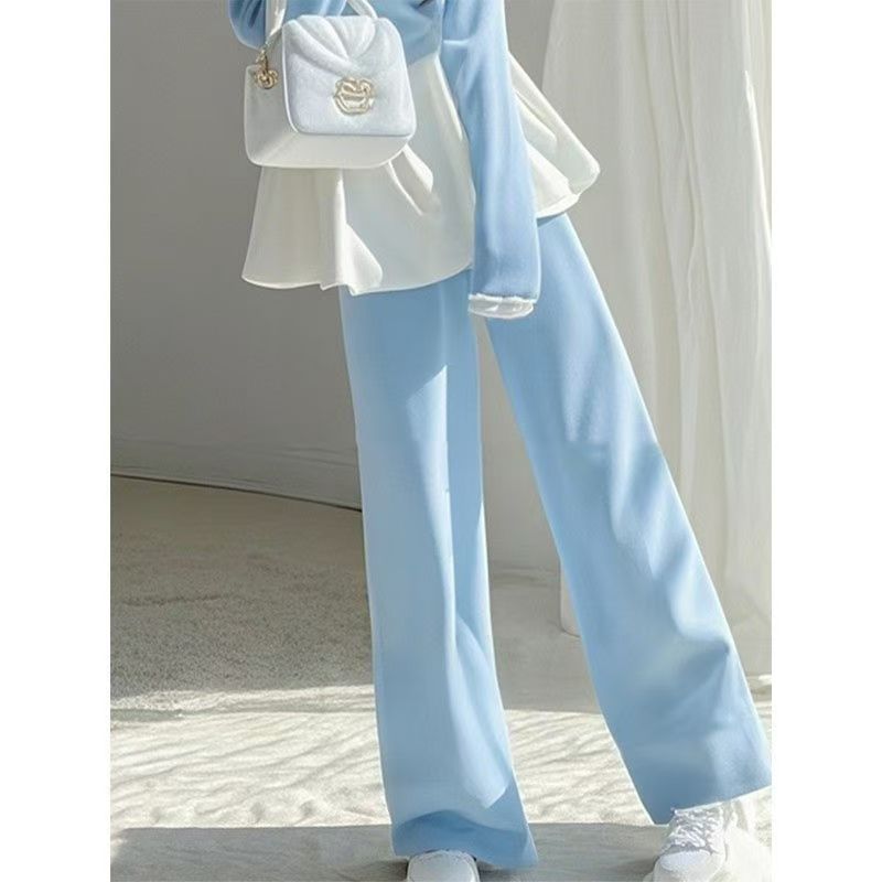 今年超火蓝色上衣+高腰阔腿裤套装秋冬时尚清新可盐可甜ins两件套