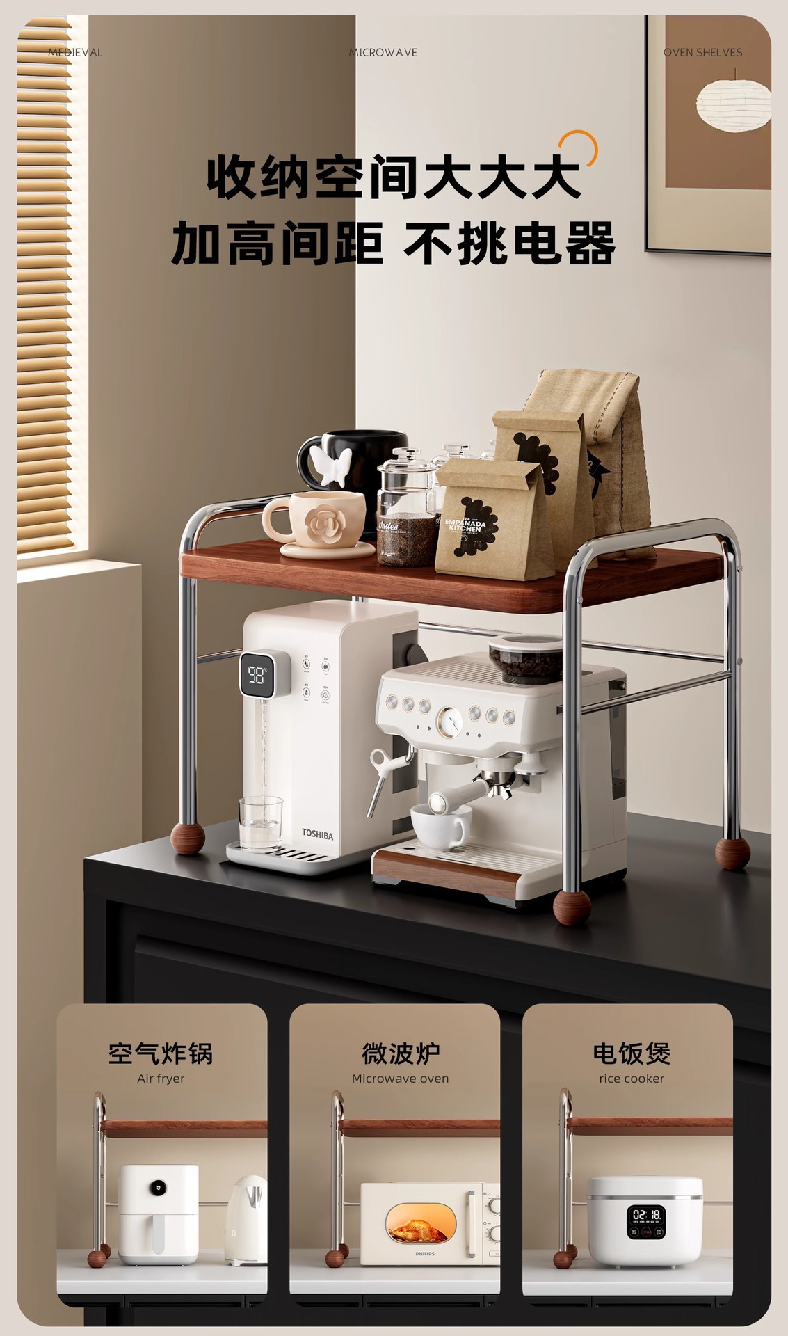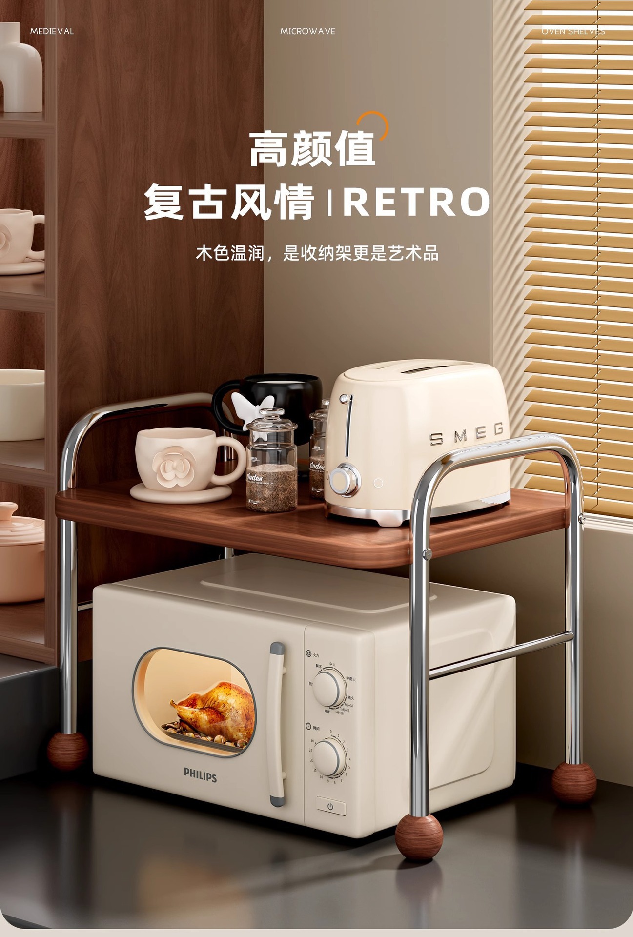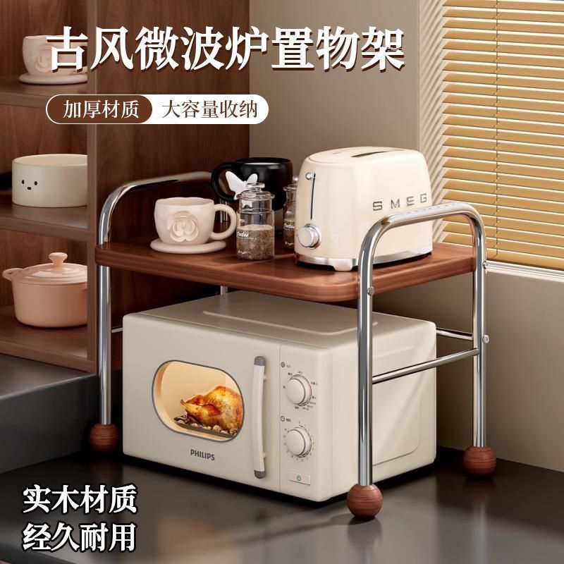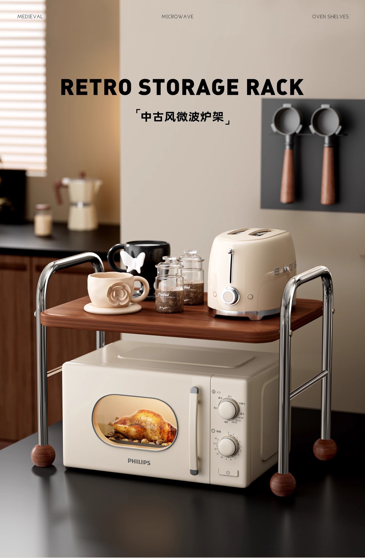 新しい中世スタイルの電子レンジラックキッチン収納ラック多機能収納オールインワンオーブンラック炊飯器ラック家庭用