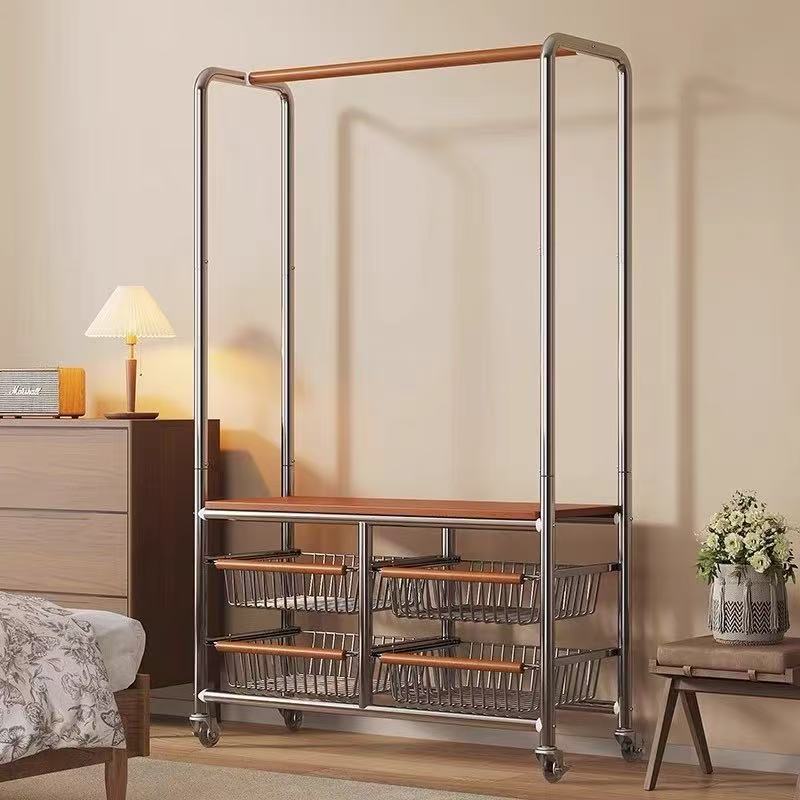 中古落地衣帽架卧室移动衣服挂架床边落地挂衣架抽屉包包置物架