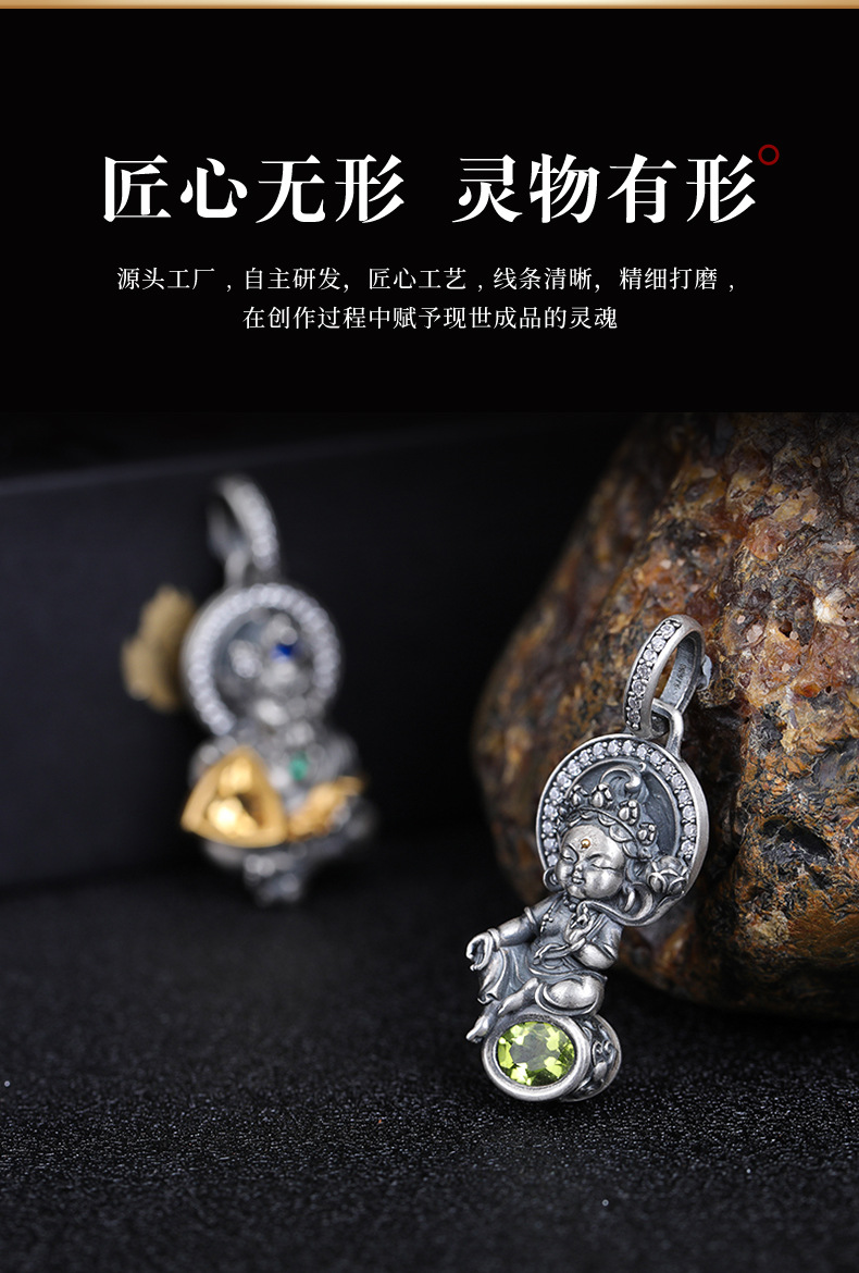 チベット式オリジナルデザインS925純銀地蔵王ザキラム黄財神セイコー国潮民族風ペンダント
