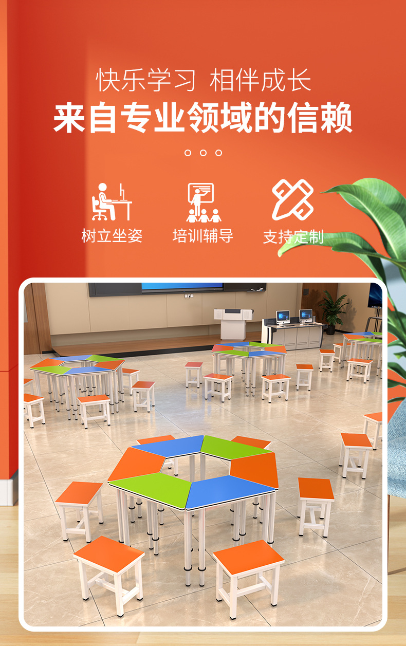 知恵の教室は組み合わせの三角のテーブルをつなぎ合わせて客の心理の訓練室の六角形のテーブルを作ります。