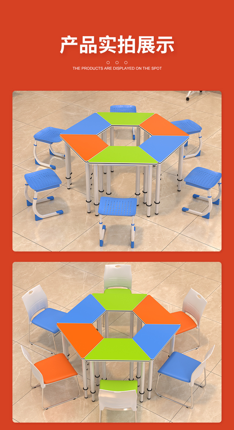 学生心理指導の六角形のトレーニングテーブルをつなぎ合わせて自由に組み合わせて六角テーブルの創業者閲覧室のテーブルと椅子を討論します。