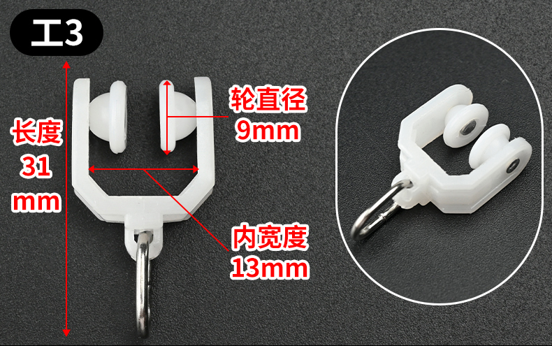 窗帘轨道滑轮挂勾配件老式滚轮弯轨导轨滑道挂钩扣环静音滚珠轮子