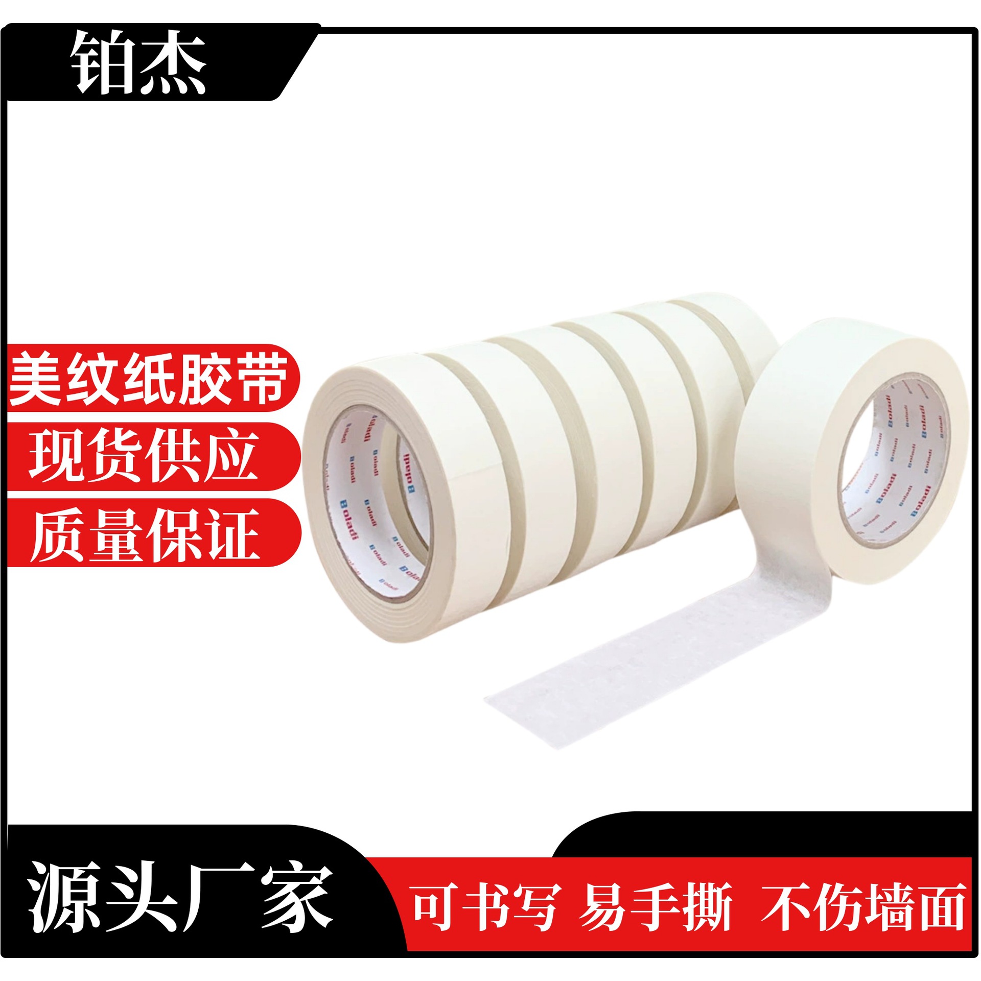 铂杰白色美纹纸胶带不留胶白色喷漆遮蔽手撕装饰美纹纸胶纸