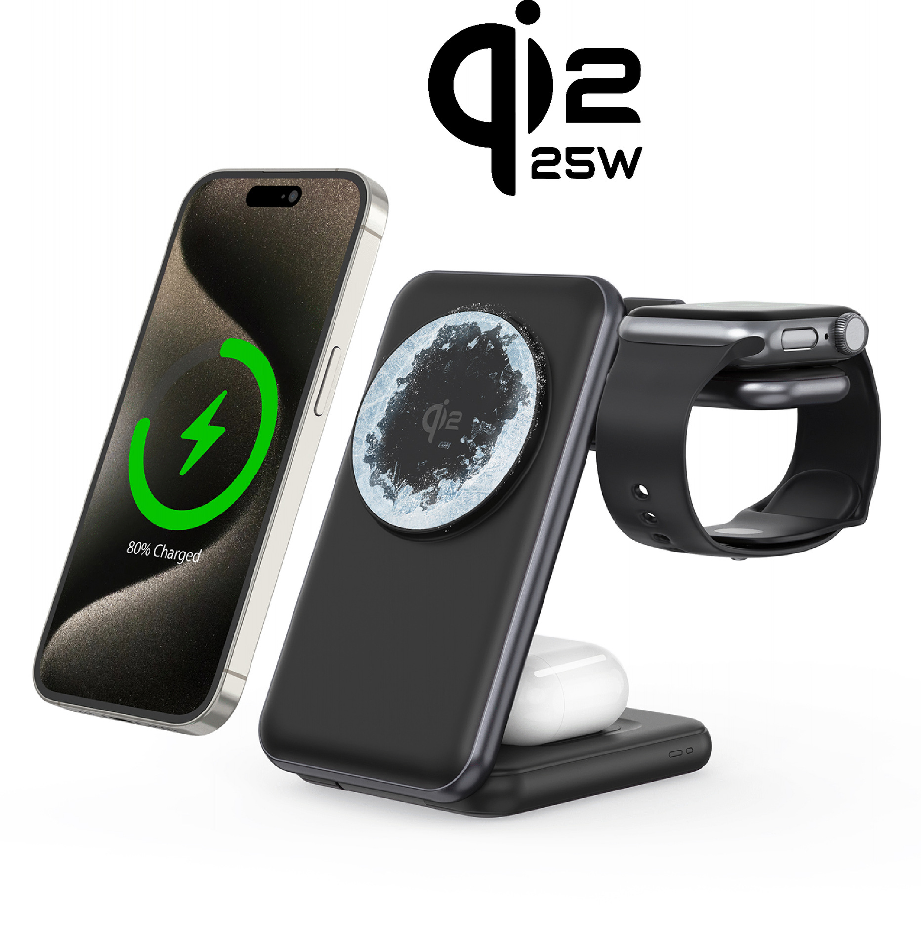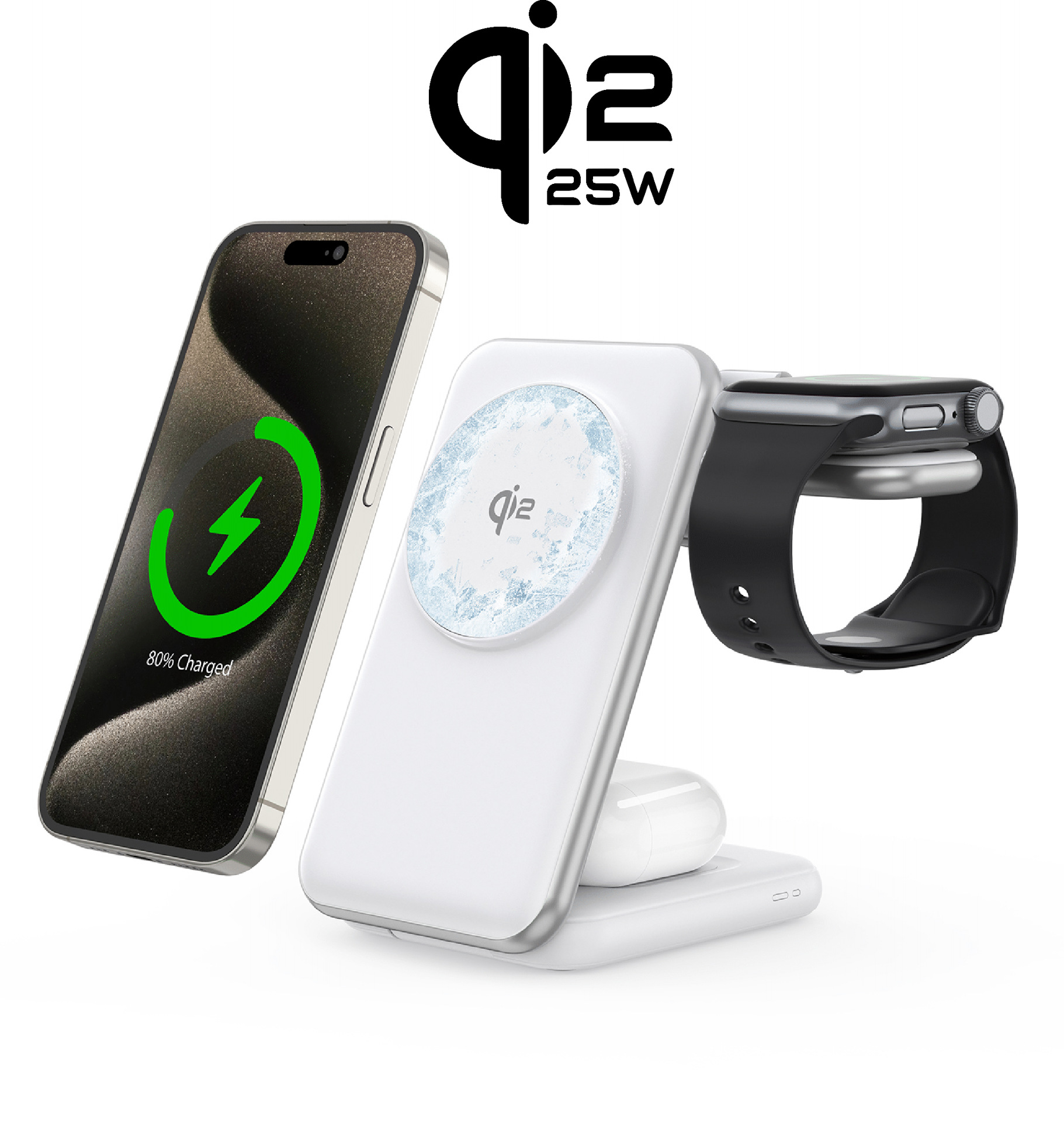 1:3合1 Qi2 qi2.2 15W/25W制冷无线充电器。
