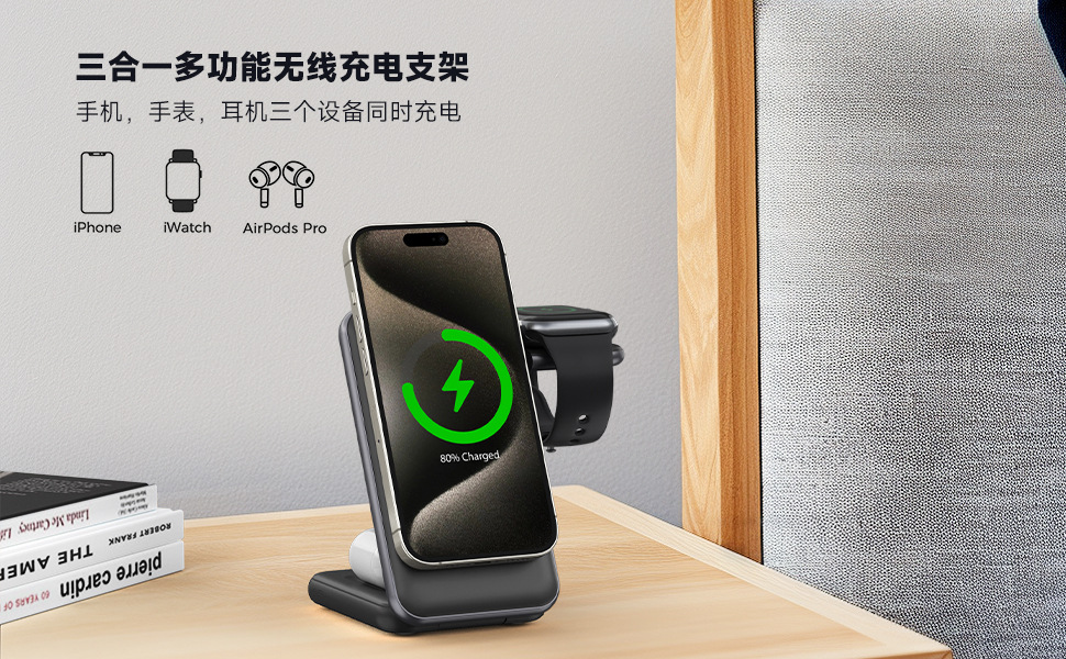 3:支持苹果和三星的手机/手表/耳机进行无线充电。