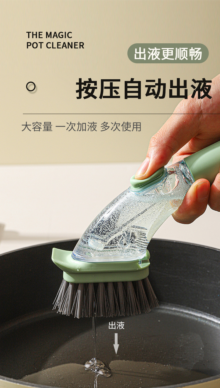 洗刷刷厨房家用刷锅刷多功能防溅厨房一体刷锅神器按压清洁剂宿舍