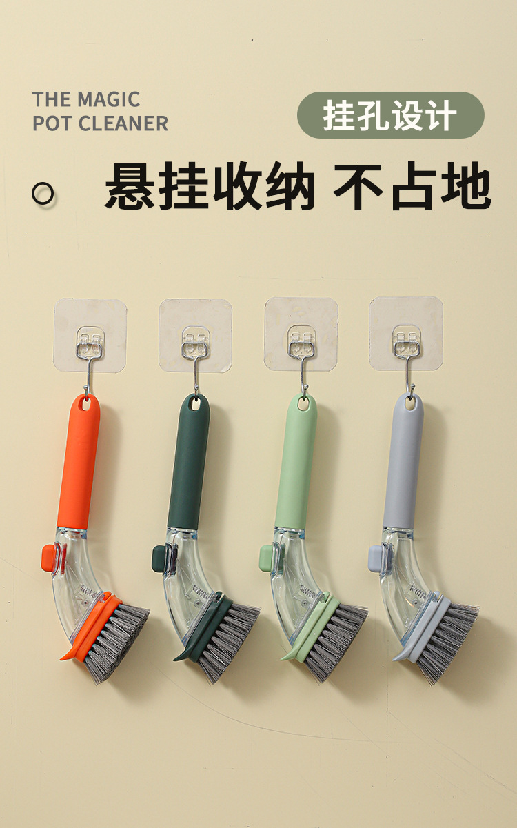 厨房彩色长柄自动加液刷锅神器刷锅洗碗刷家用洗锅刷子钢丝清洁球