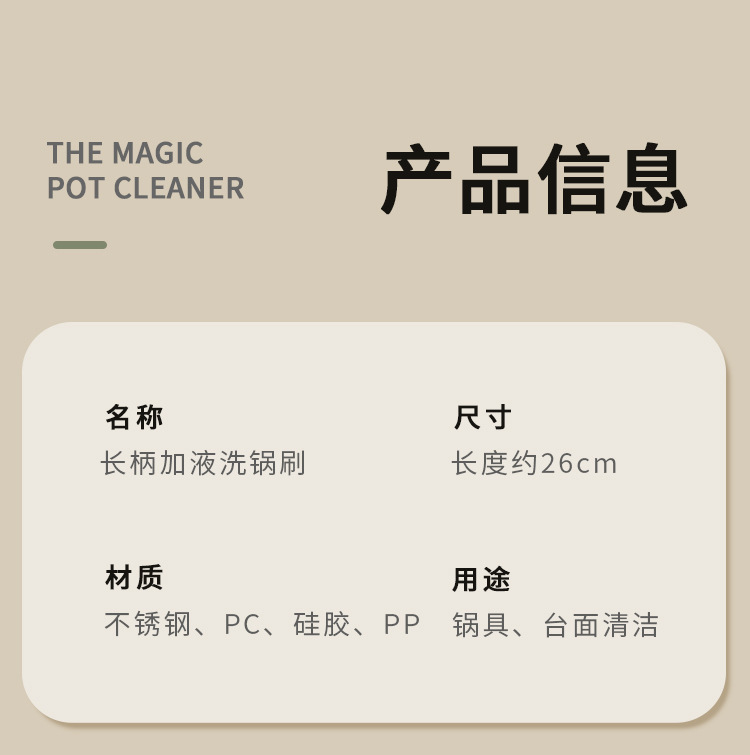 长柄刷锅神器自动加液洗碗刷厨房家用洗锅专用刷子钢丝pet清洁刷