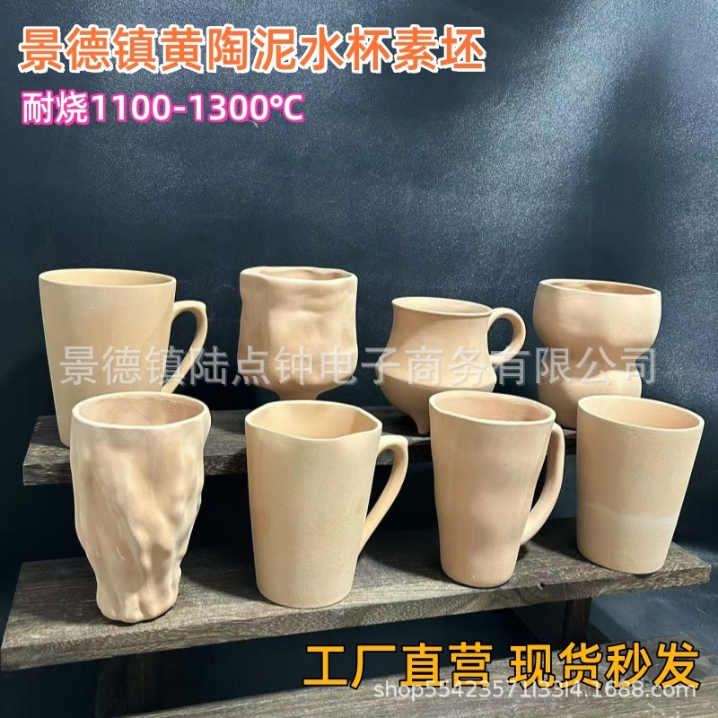 黄陶泥水杯素坯陶瓷半成品陶泥素坯陶泥水杯