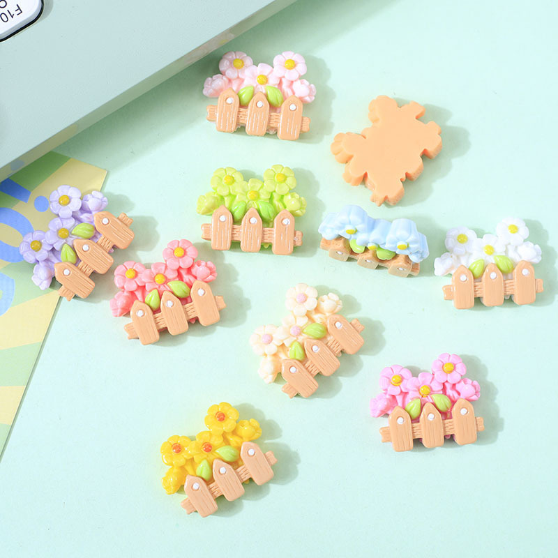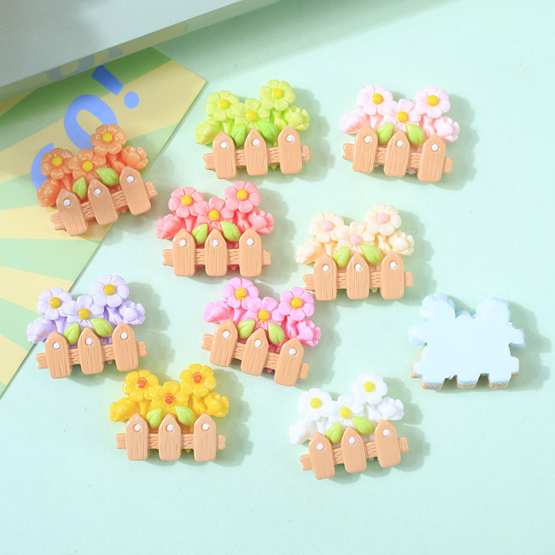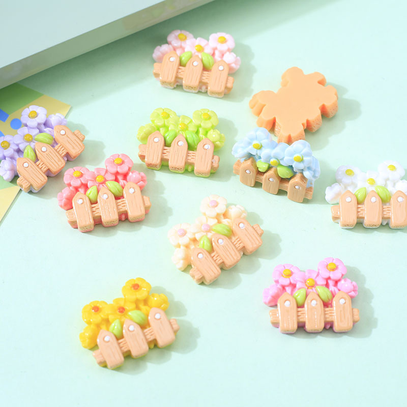 彩色花朵栅栏~新款卡通手工奶油胶树脂小配件diy饰品发卡发夹吊坠