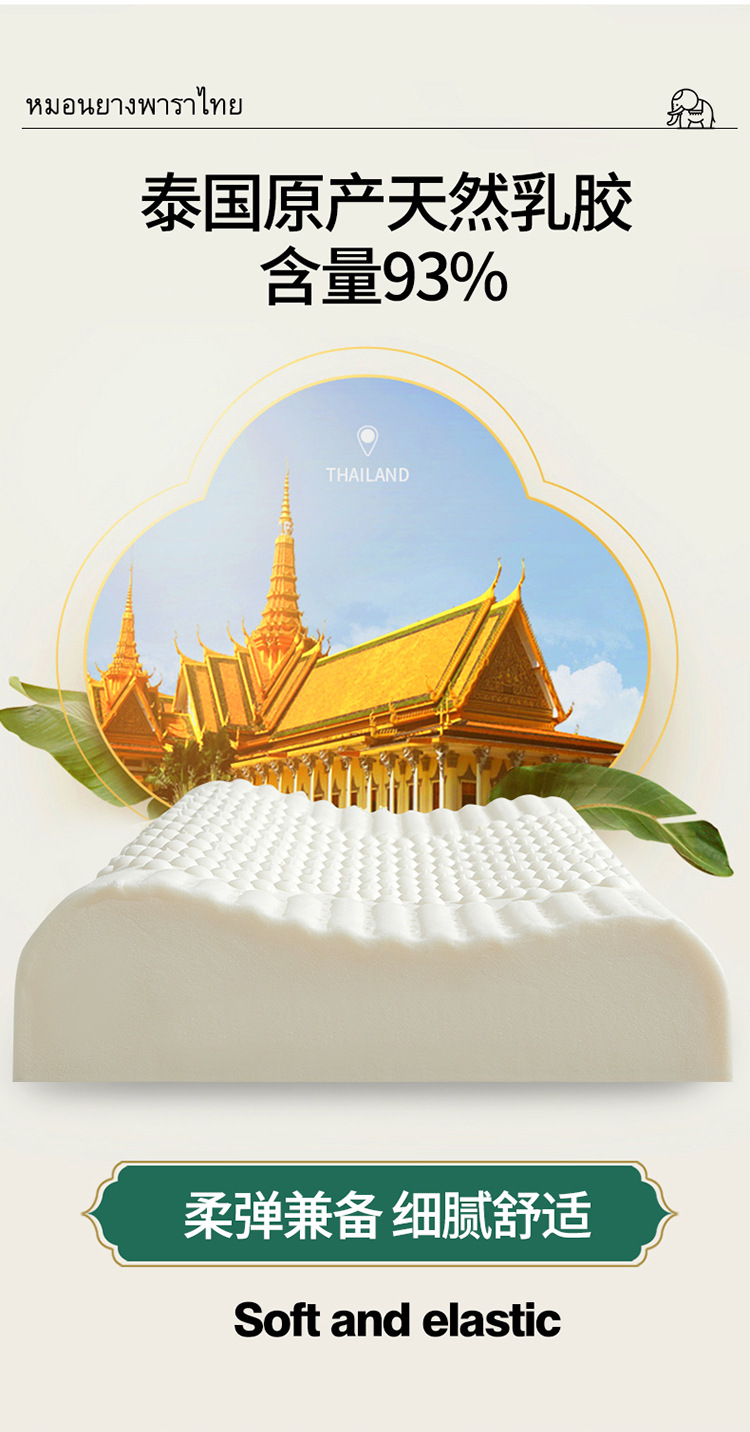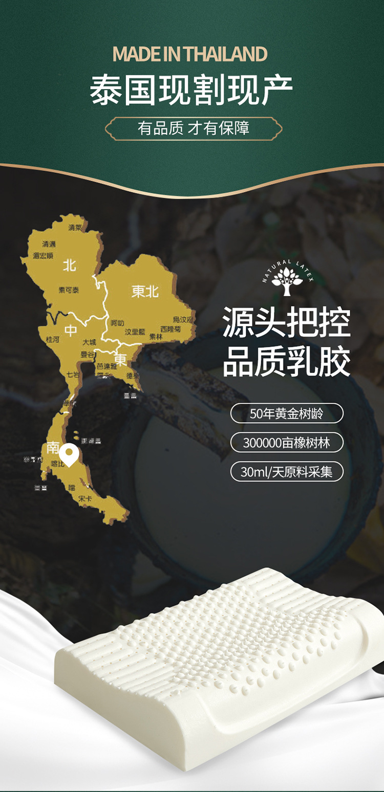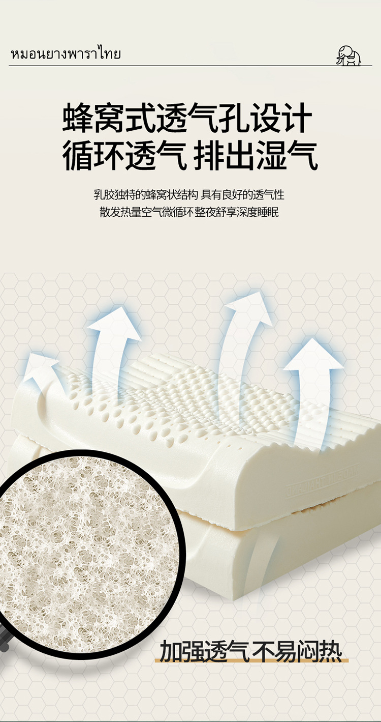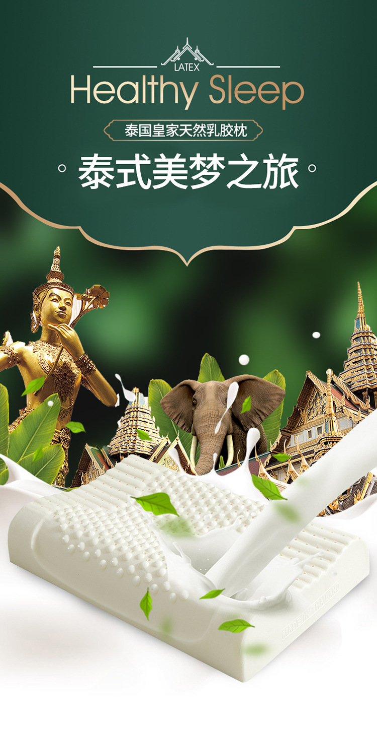 タイの本物の天然ラテックス枕、睡眠を助け、頚椎を保護する枕コアシリコーンゴム学生寮シングル男性全頭