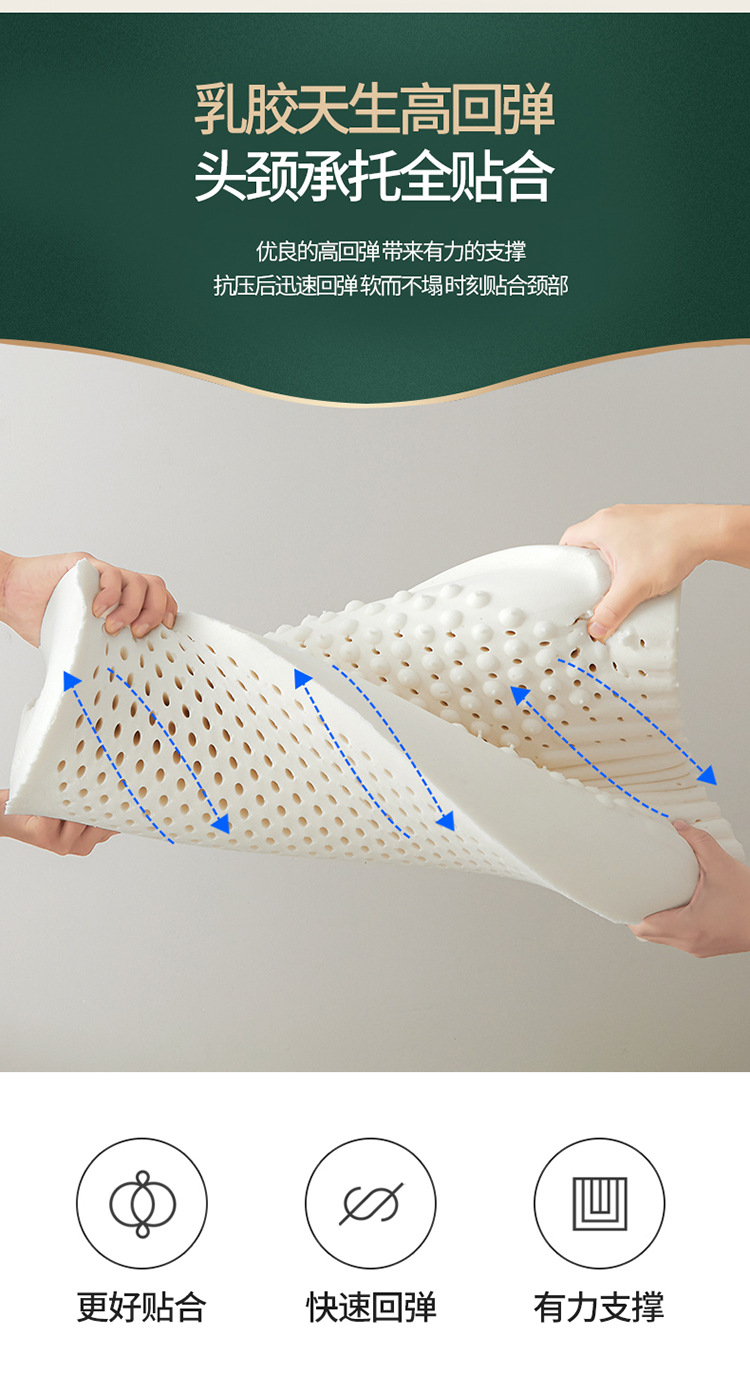 泰国乳胶枕头枕芯家用护颈椎枕助睡眠天然橡胶低硅胶学生宿舍