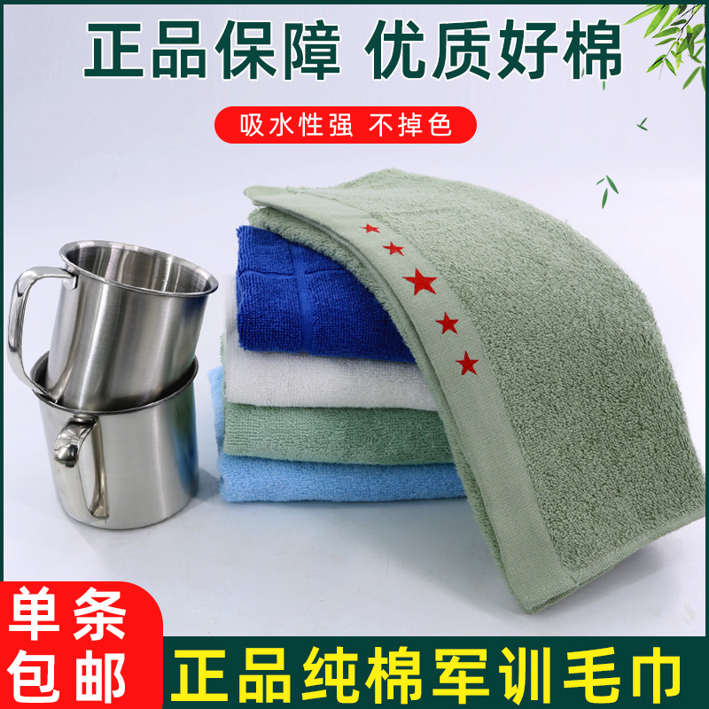 批发纯棉正品制式五星军绿色毛巾学生训练军训加厚吸水洗脸巾