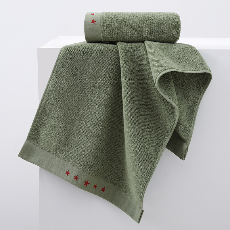 標準軍事訓練寮ダークグリーンタオル学生白タオル洗顔吸水タオルアーミーグリーン綿タオルフェイスタオル