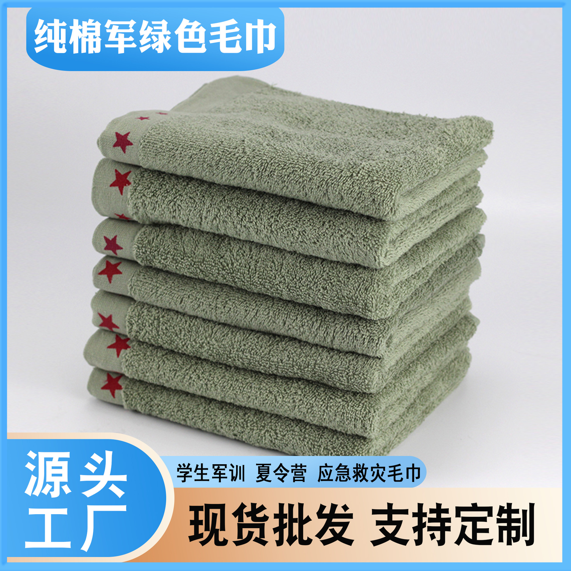军绿毛巾军训厂家直销棉劳保支持logo团建户外加厚吸水宿舍学生