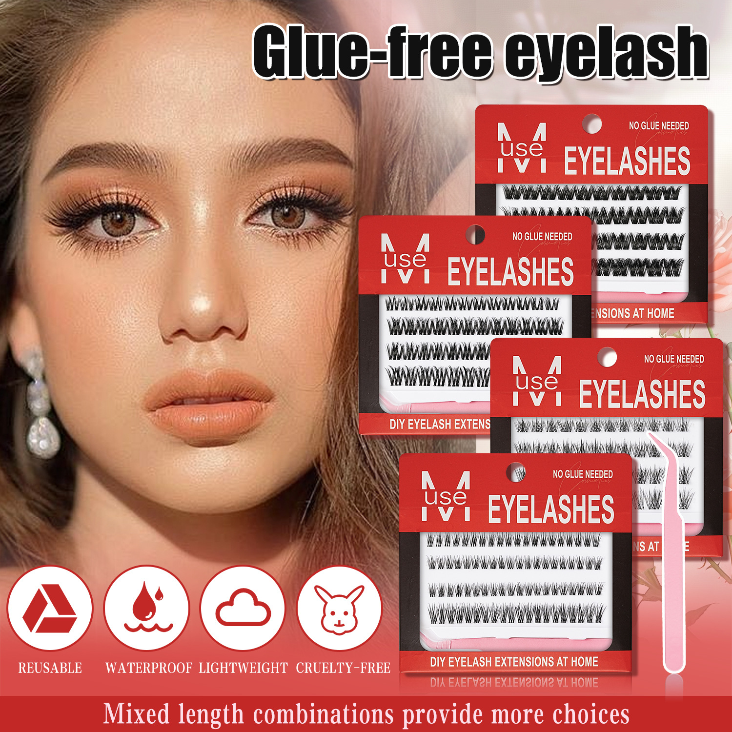 免胶自粘假睫毛妈生感 自然仿真分段式单簇眼睫毛DIY嫁接重复使用