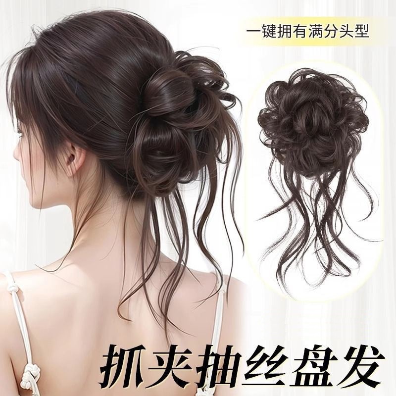 抽丝丸子头假发发圈女妆造师同款盘发龙须丸子抓夹自然蓬松花苞头