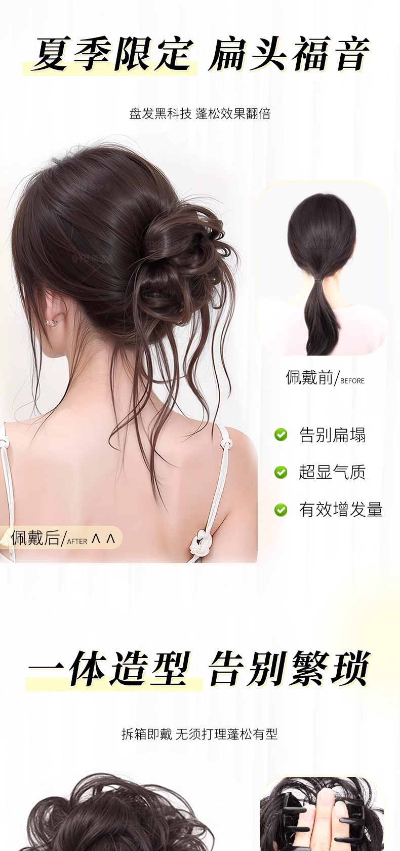 龙须丸子头假发抓夹温柔侧扎千金盘发神器蓬松增量仿真发包花苞头