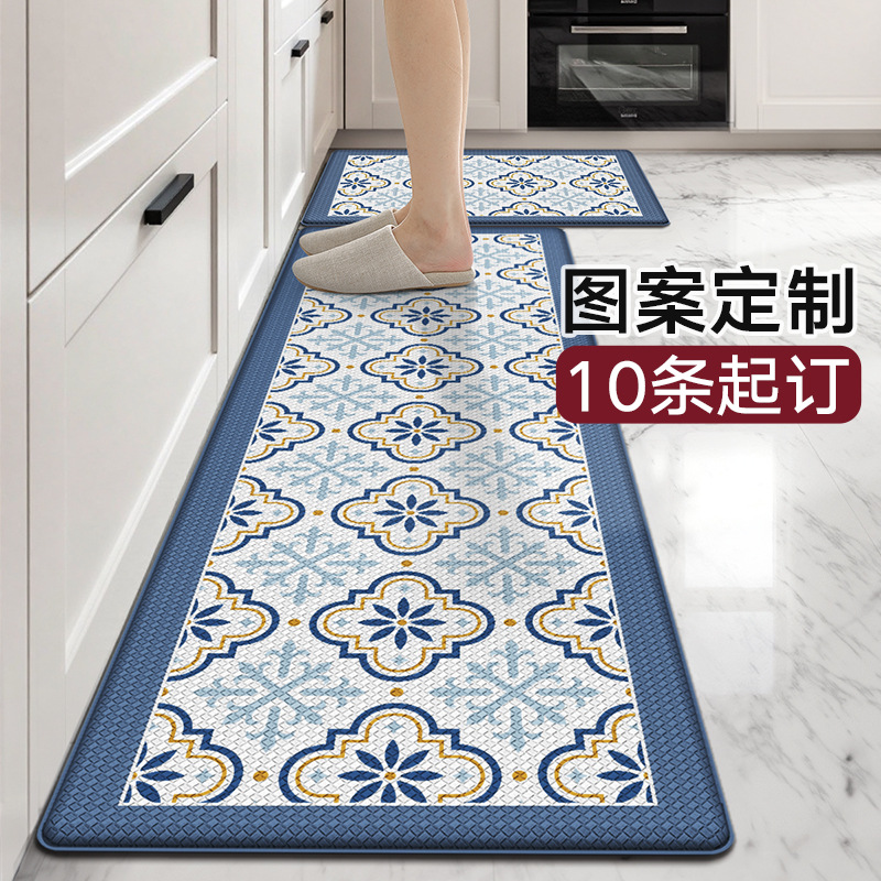 欧洲站长条厨房地垫抗疲劳皮革防水防油污脚垫防滑家用可擦亚马逊