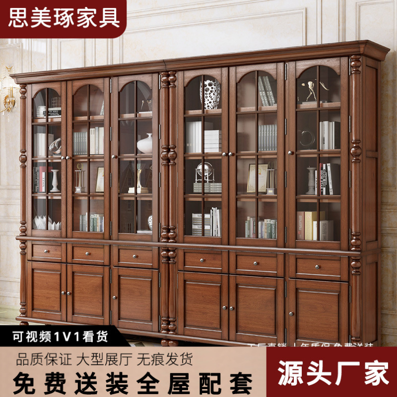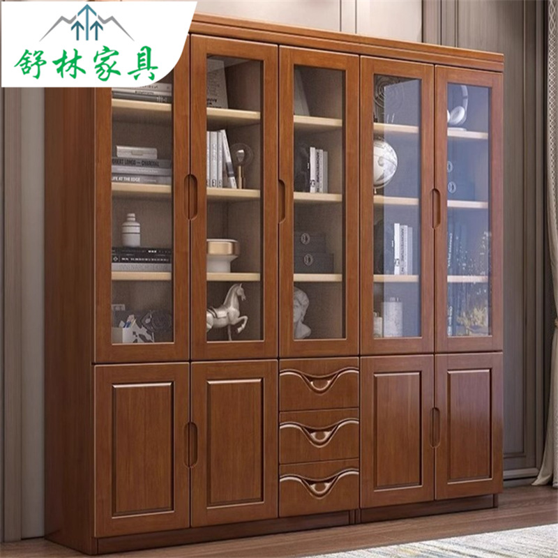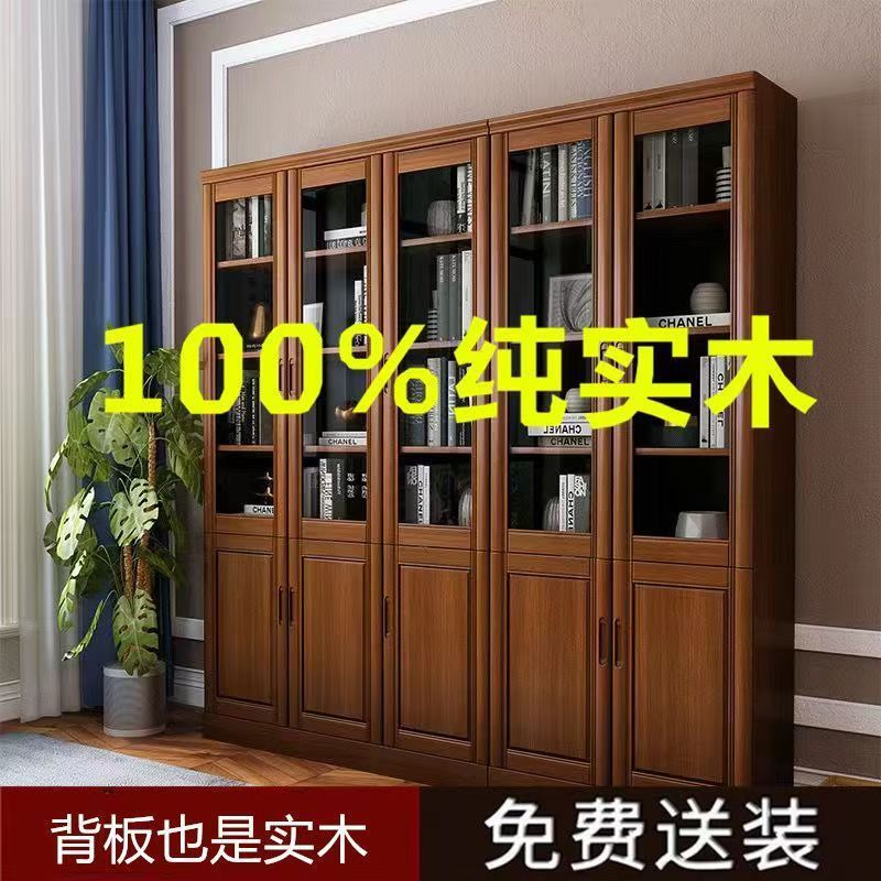 純実木本棚全実木原木本棚キャビネットガラス扉付き現代シンプル中国式着地オフィスファイルキャビネット