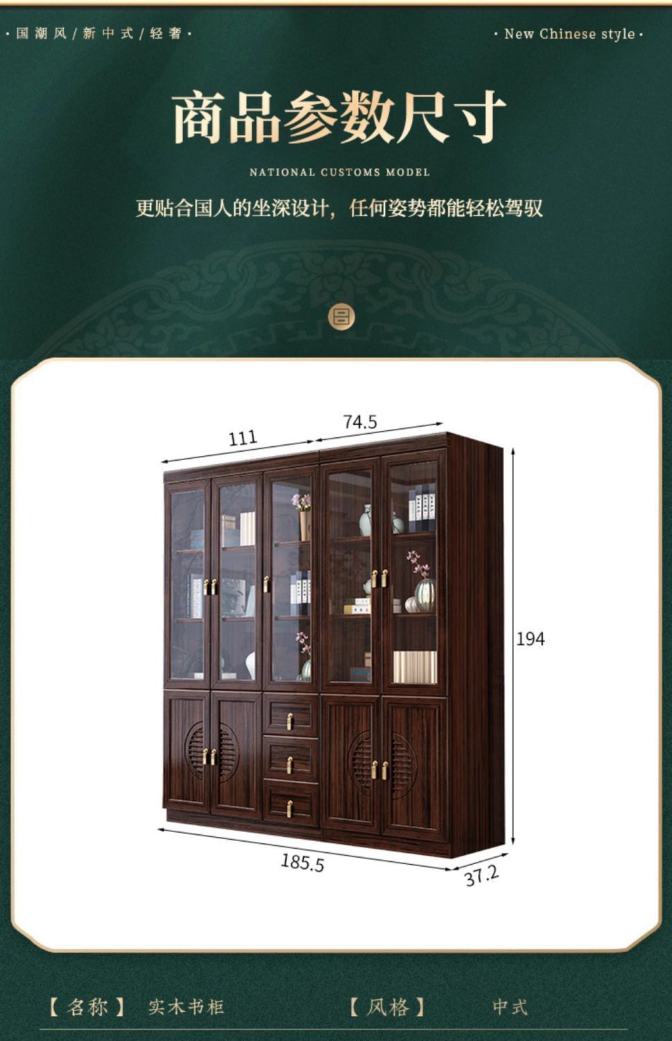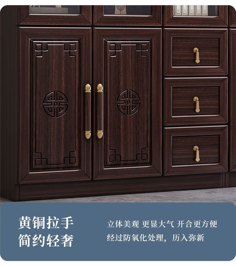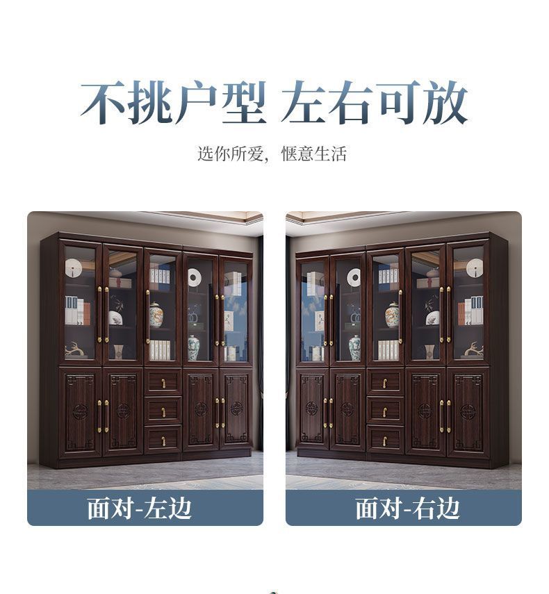 新中国式全実木本棚彫刻書斎ガラス扉付き本棚セット着地3ドア6ドアロッカー本棚