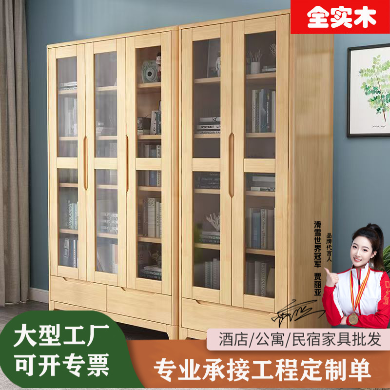 北欧全無垢材本棚ホームスタディ本棚リビングルームガラスドア防塵名誉ディスプレイキャビネット床置き収納キャビネット