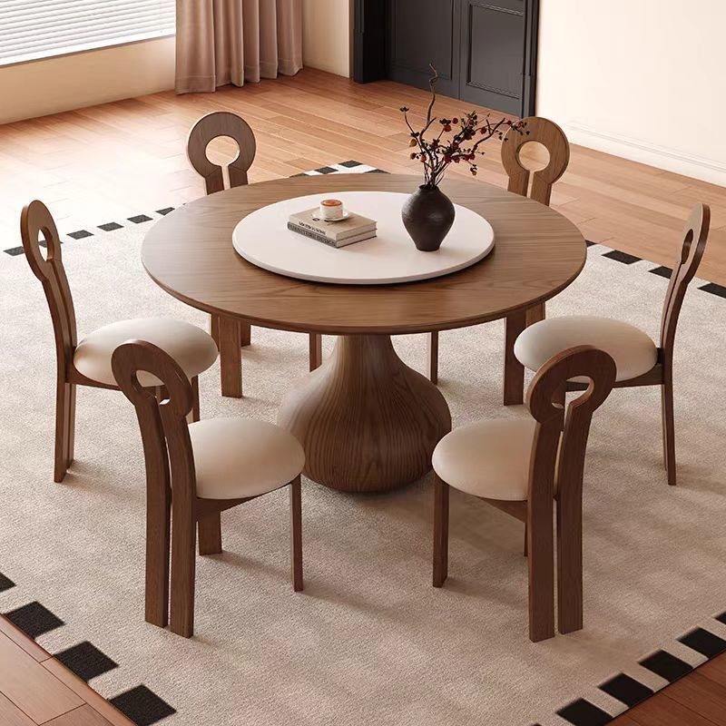 家庭用無垢材ダイニングテーブル、小さなアパート、ミッドセンチュリースタイル、イタリアンモダン、シンプル、ウォールナットカラー、フレンチレトロスタイル、ラウンドダイニングテーブル