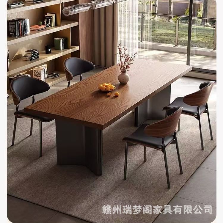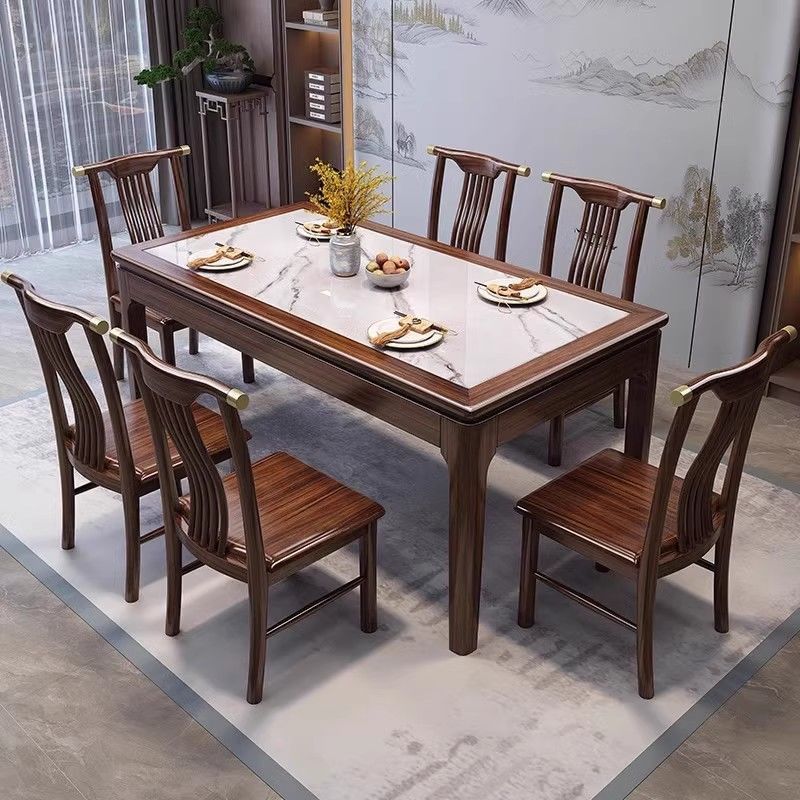新しい中国風のウルフウッド全無垢材のダイニングテーブルと椅子の組み合わせモダンでシンプルな長方形の家庭用ライト高級スレートダイニングテーブル