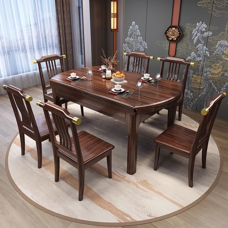 新しい中国風のウッディウッドダイニングテーブルと椅子の組み合わせ、モダンでシンプルな小さなアパートの拡張可能な家庭用ダイニングテーブル、正方形と円形の両用