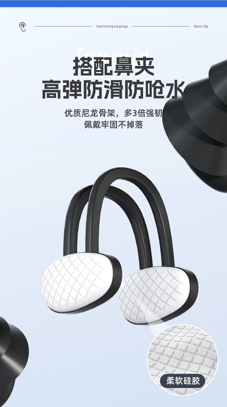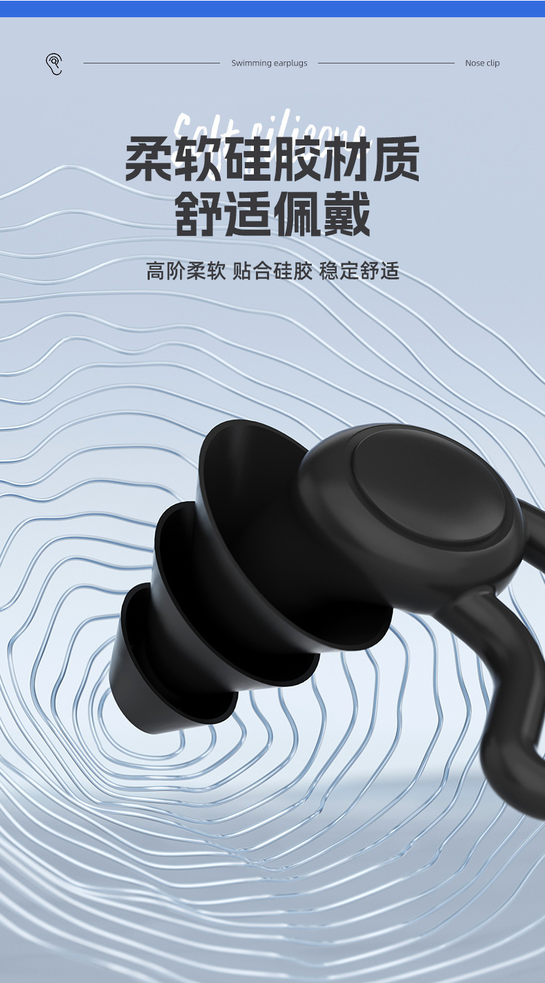 袋入り鼻挟み耳栓セットソフトシリコン三層防水成人子供通用水泳用品装備卸売り
