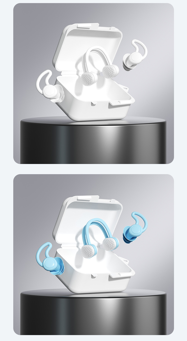 シリカゲル水泳スパイラル耳栓防水むせ防止柔らかい鼻挟みセット箱スパイラル耳栓現物卸売り可能