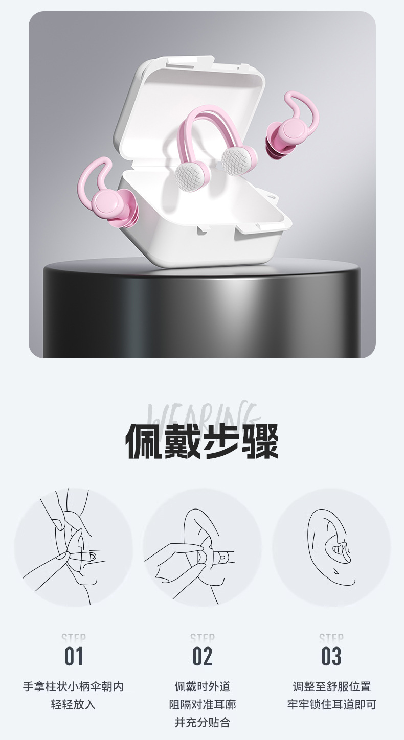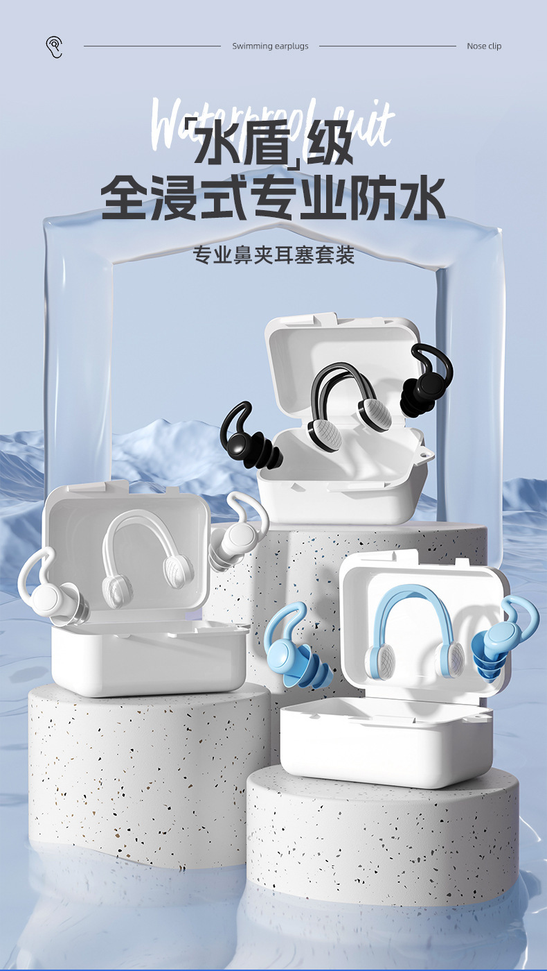 硅胶游泳螺旋耳塞防水防呛柔软鼻夹套装盒装螺旋耳塞现货可批发