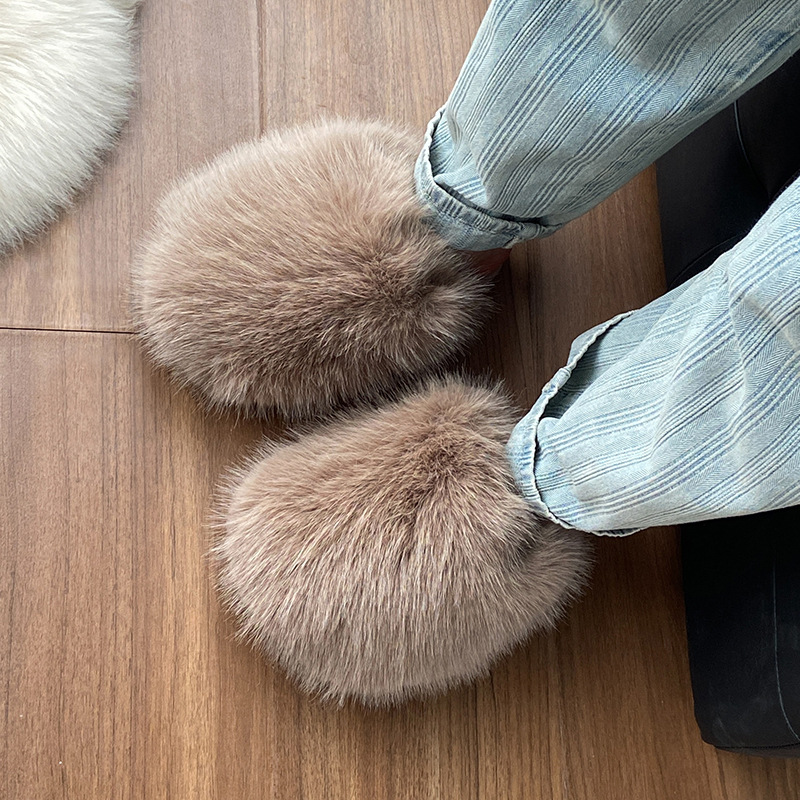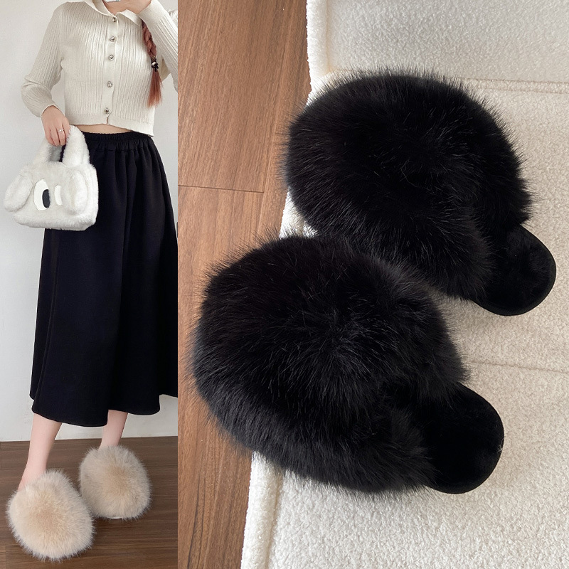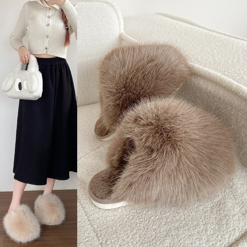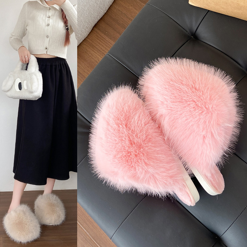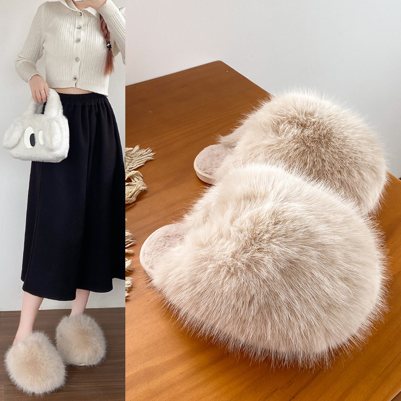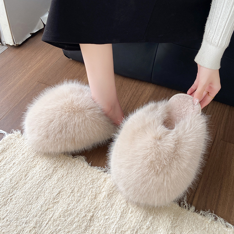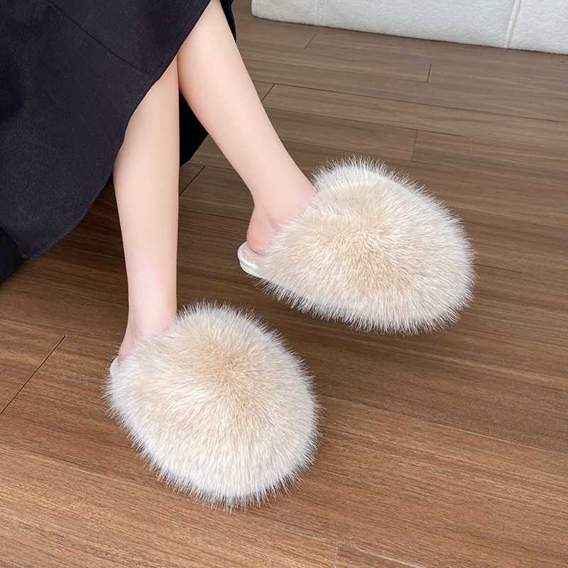 女性用外国貿易毛皮スリッパ 2024 秋冬新スタイル包頭大型スリッパ女性の靴ホームウェアフラット暖かい綿スリッパ