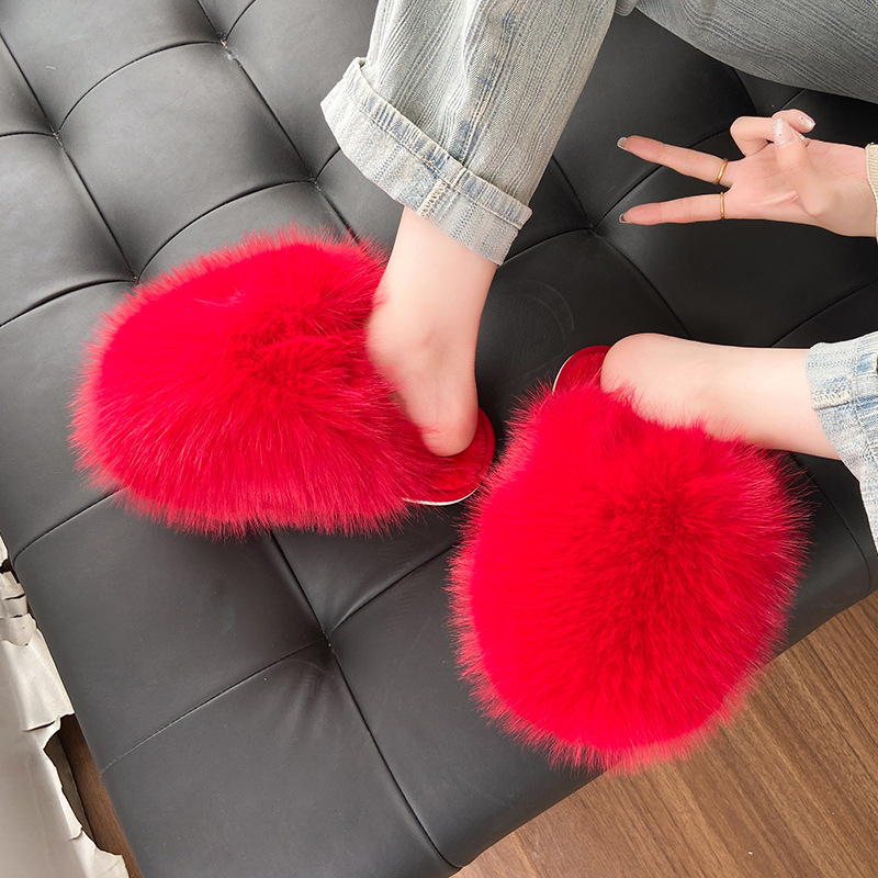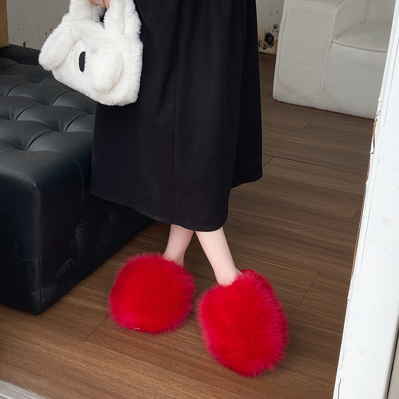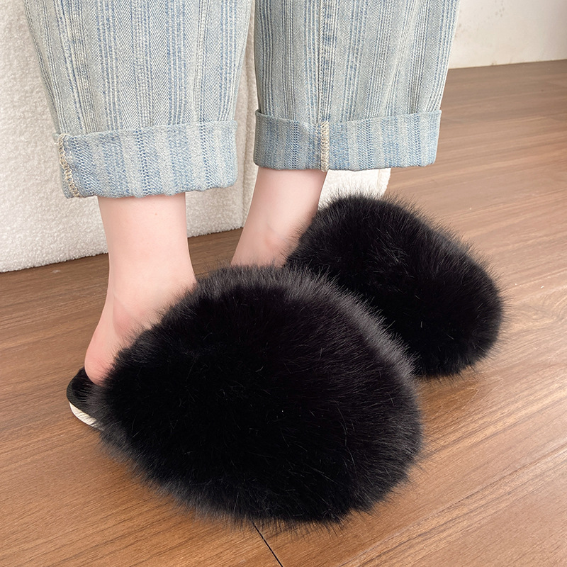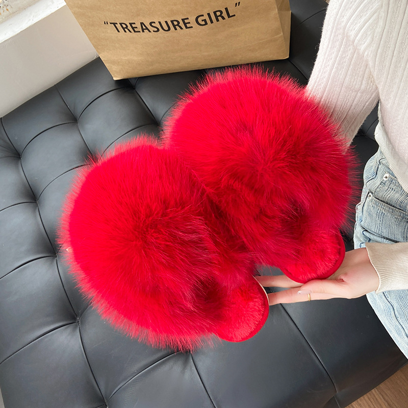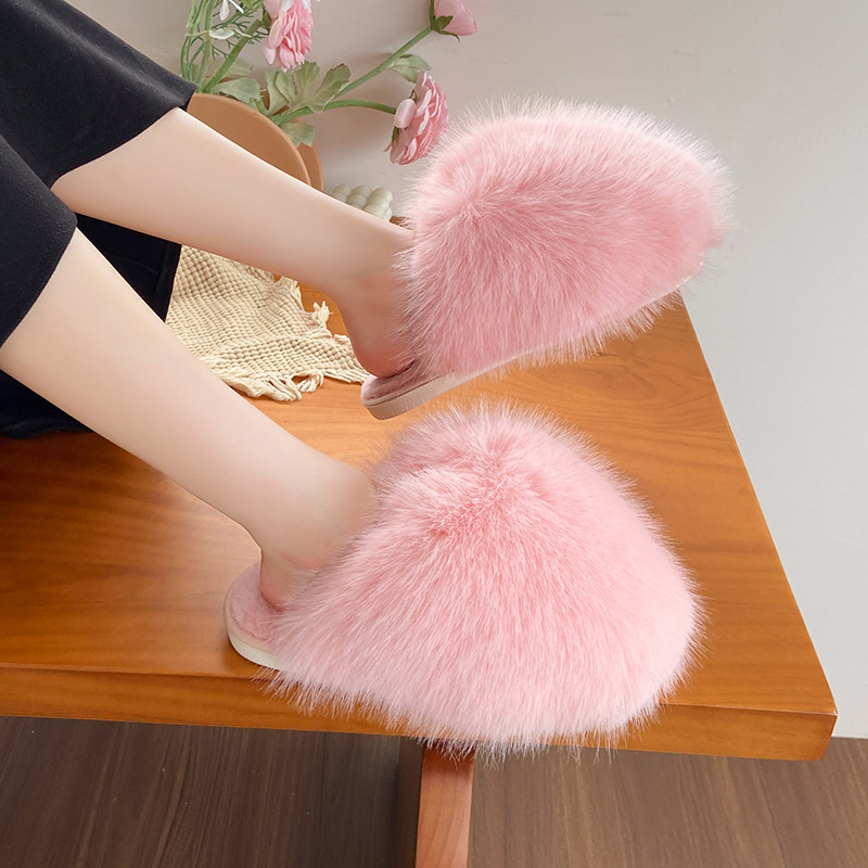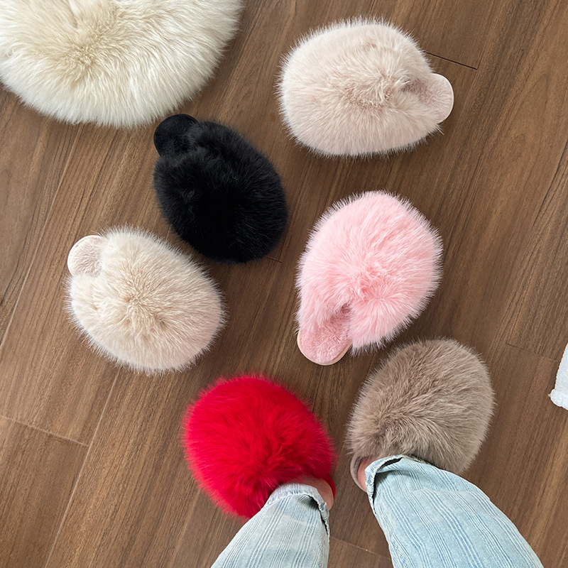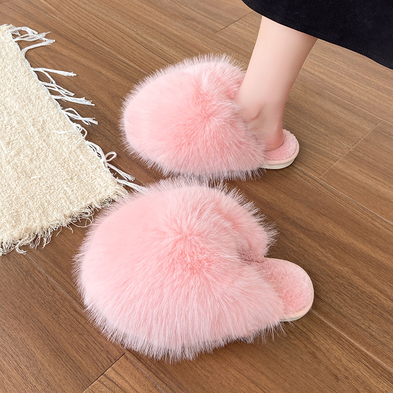 クロス毛スリッパ女性冬対外貿易アマゾン43大サイズの家庭毛毛露指保温縫製綿ドラッグ卸売り