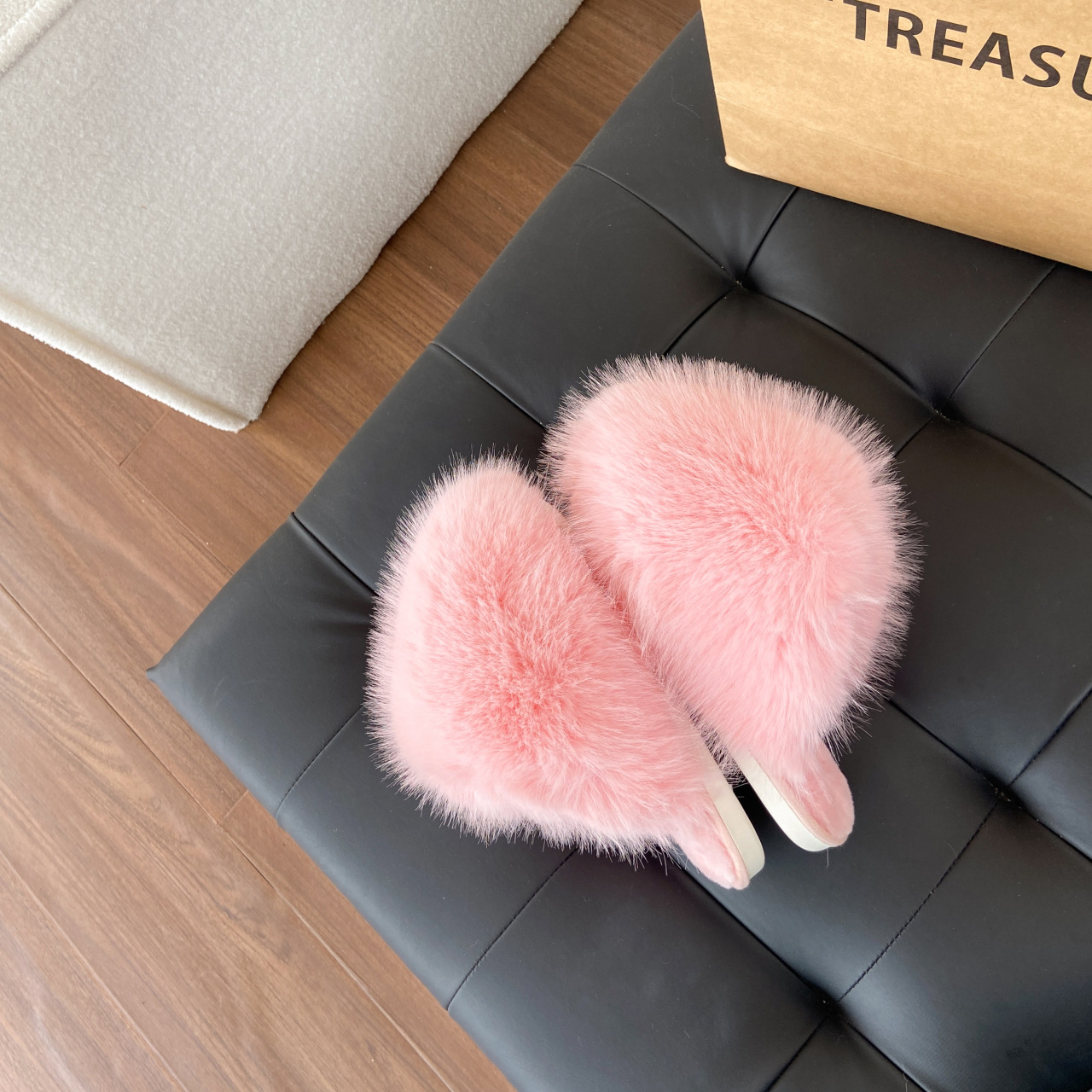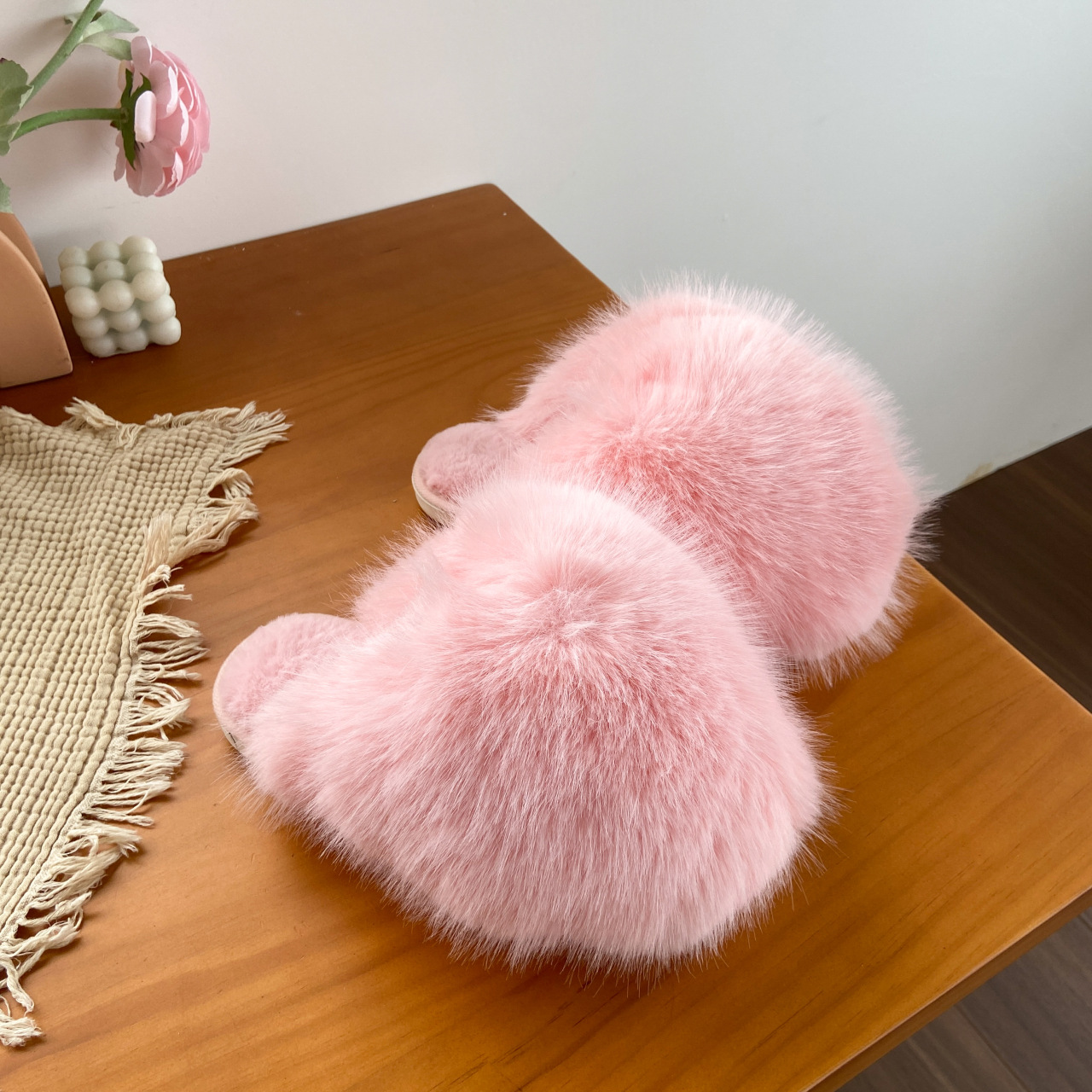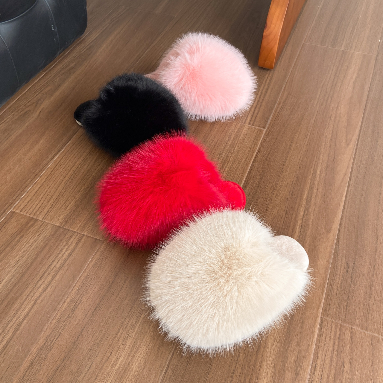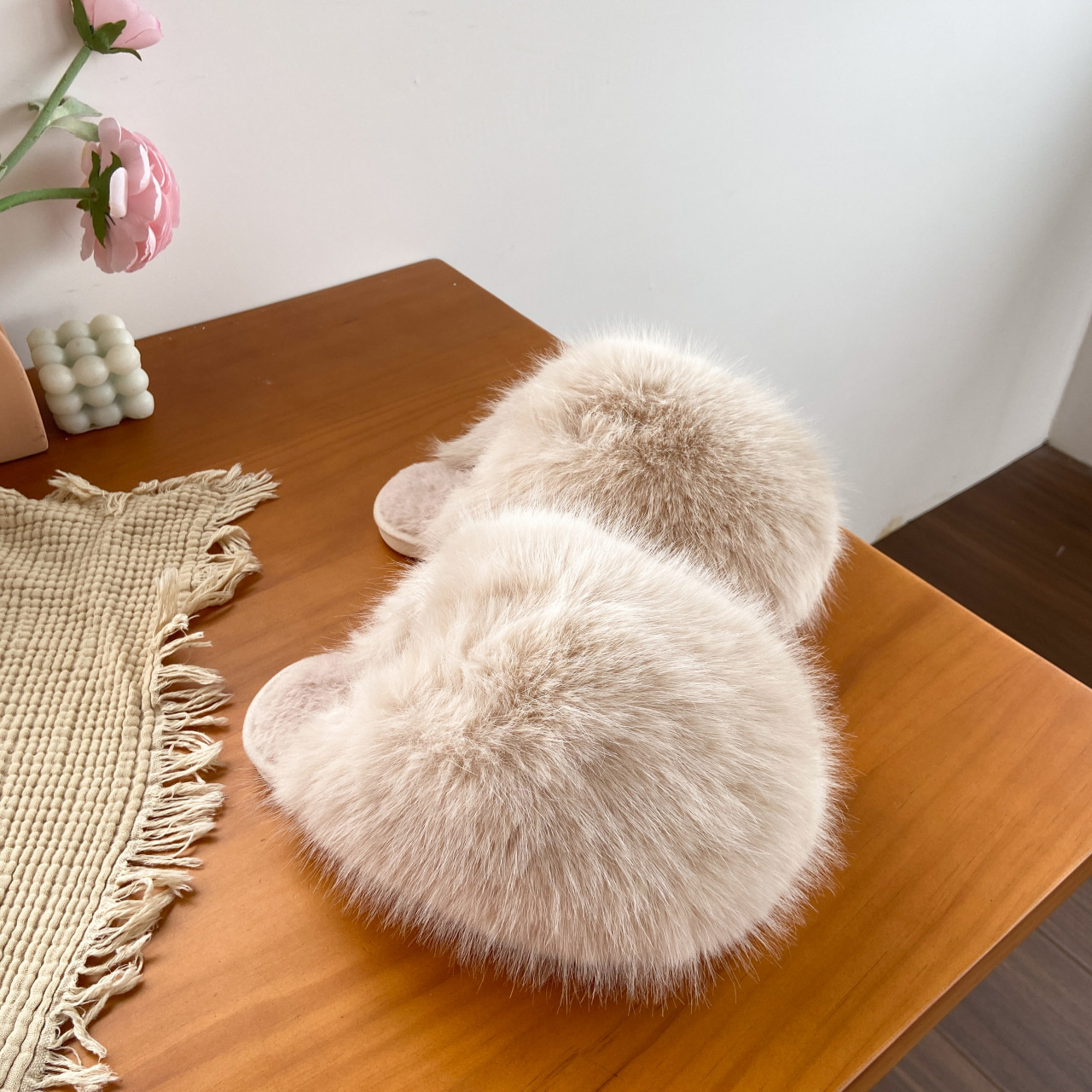 ネットセレブ愛用の毛皮スリッパ レディース 2025年秋冬新作 タオル刺繍文字入り 保温性のあるフラットソール モコモコスリッパ 外履き
